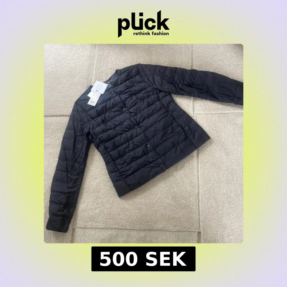 Säljer en stilren svart dunjacka från Uniqlo. Jackan är ultralätt och har en quiltad design med knappar framtill. Perfekt för kyliga dagar när du vill hålla värmen utan att känna dig tung. Ett måste i garderoben för den som gillar funktion och stil.