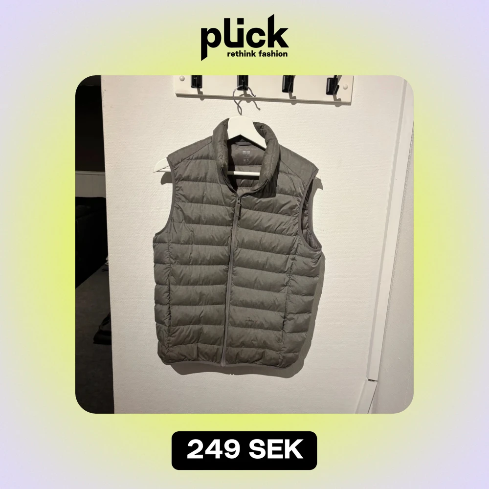 Säljer en stilren grå dunväst från Uniqlo i storlek XS.