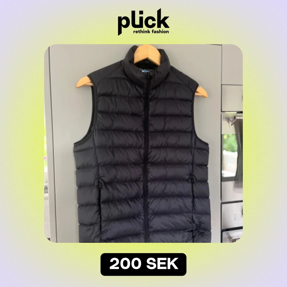 Snygg svart lättvikts-dunväst från Uniqlo. Måttligt använd, inga skador. Stl XS, herr