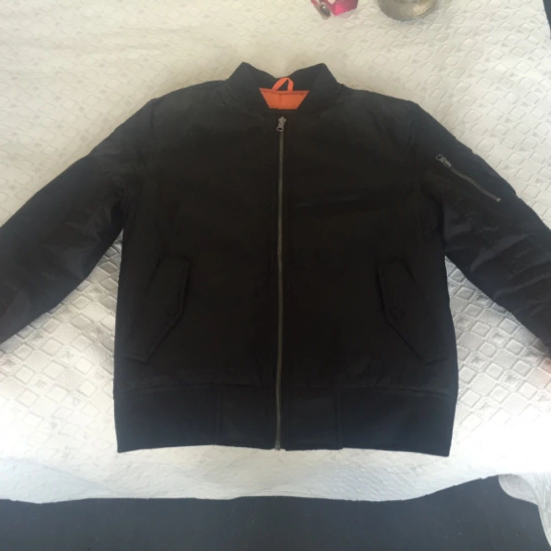 Säljer en bomberjacka i princip ny! Har använt den en gång. Storleken är lite liten . Den är köpt i junkyjard