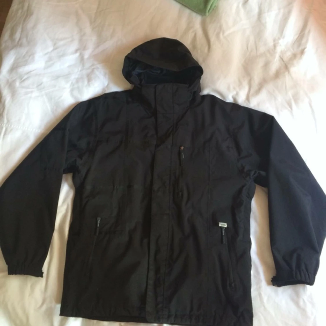 Begagnad Vans parka i svart kraftig vattentätt tyg. Tål det mesta!! Snö-/wind topper på insidan i midjan. Avatagbar och reglerbar luva. Svagt knappt synbart slitagemärke på magen. I övrigt felfri. Storlek: LARGE