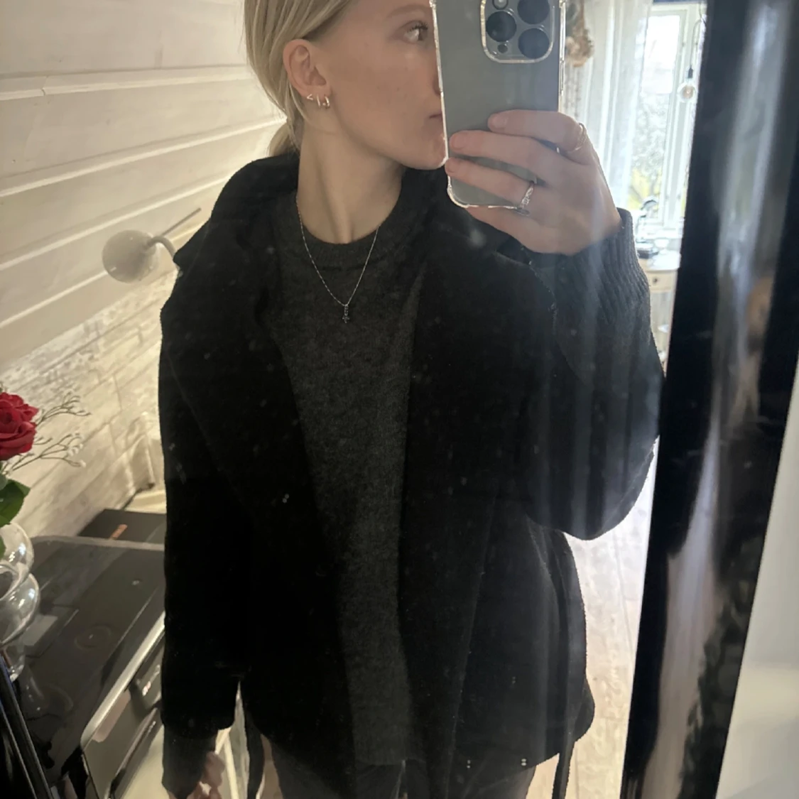 jättefin kappa/jacka att ha till våren! Säljer då jag köpt en ny🫶🏼 den är lite noppig nedtill på bilderna, men har noppmaskin så kan lösa det om ni vill❤️