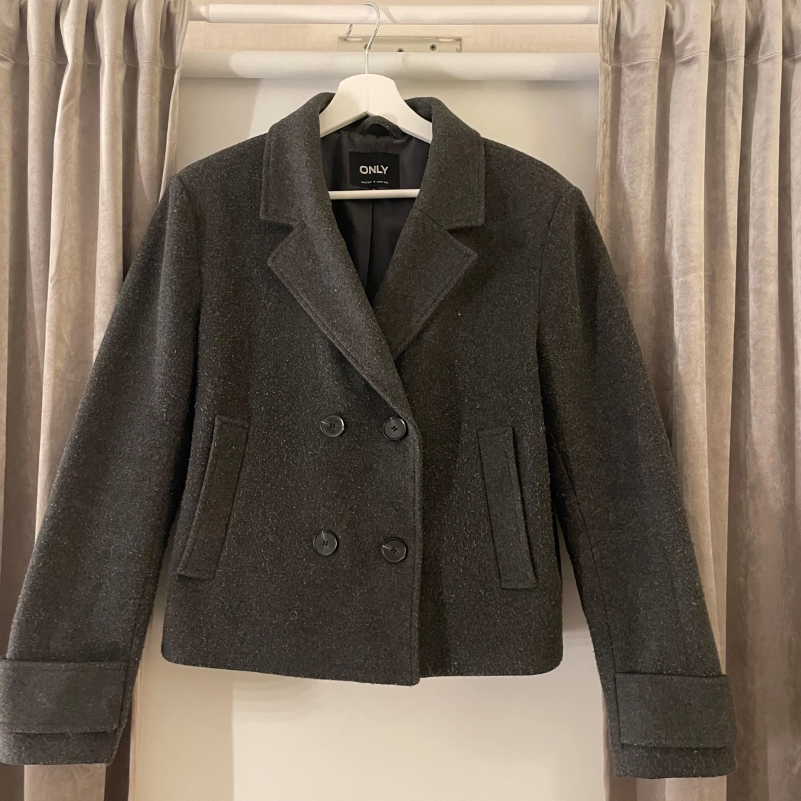 Säljer en kappa perfekt nu till våren. Storlek M men den är som S. Säljs pågrund av att den inte kommer till användning längre. Kappan är i bra skick. Hör av dig vid eventuella frågor💗