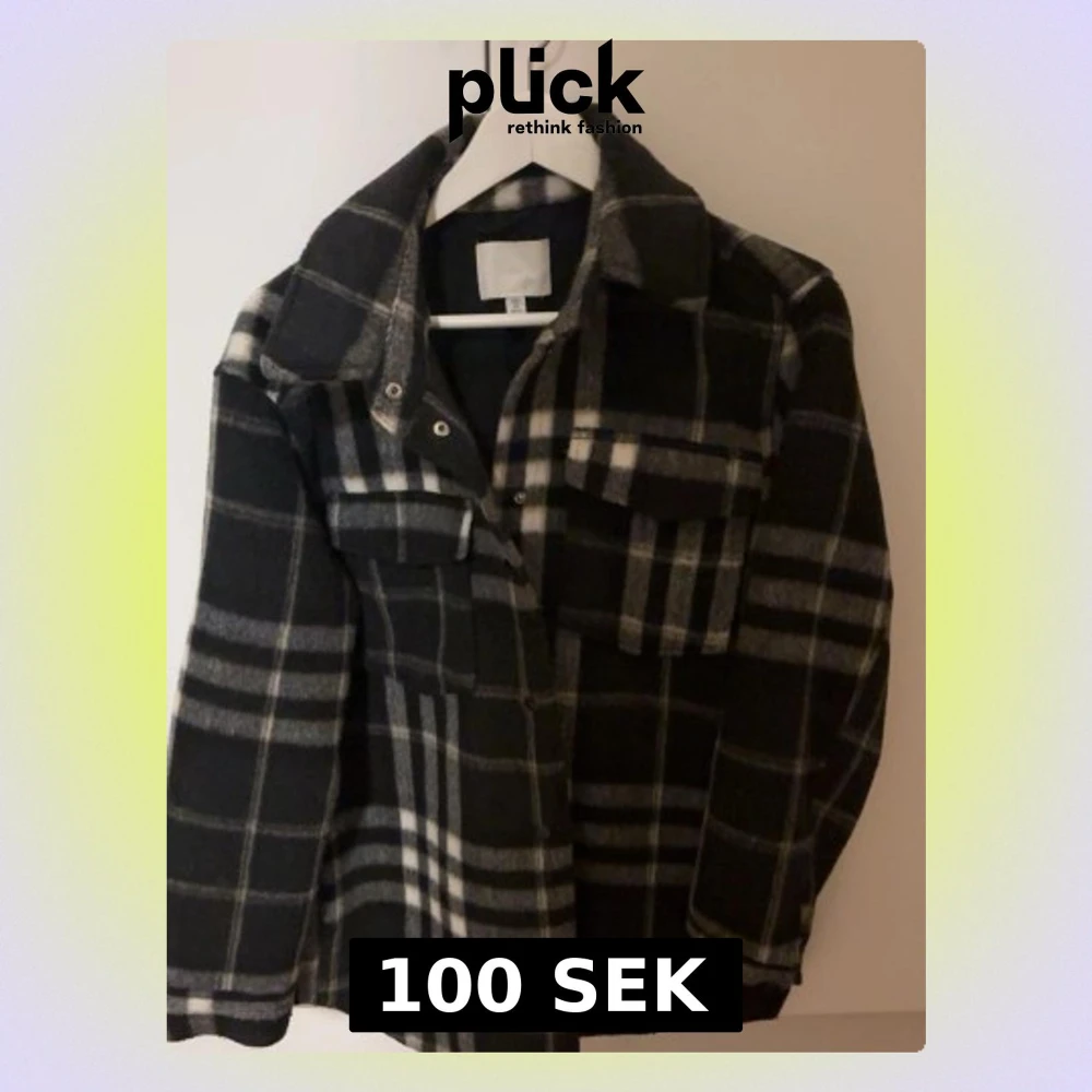 Säljer en oversized overshirt / jacka i svart och grått med rutigt mönster. Jackan har stora bröstfickor med knappar och klassisk krage. Perfekt att slänga över en hoodie eller t-shirt för en chill look. Materialet känns mjukt och värmande, perfekt för lager på lager. Kappa material ish