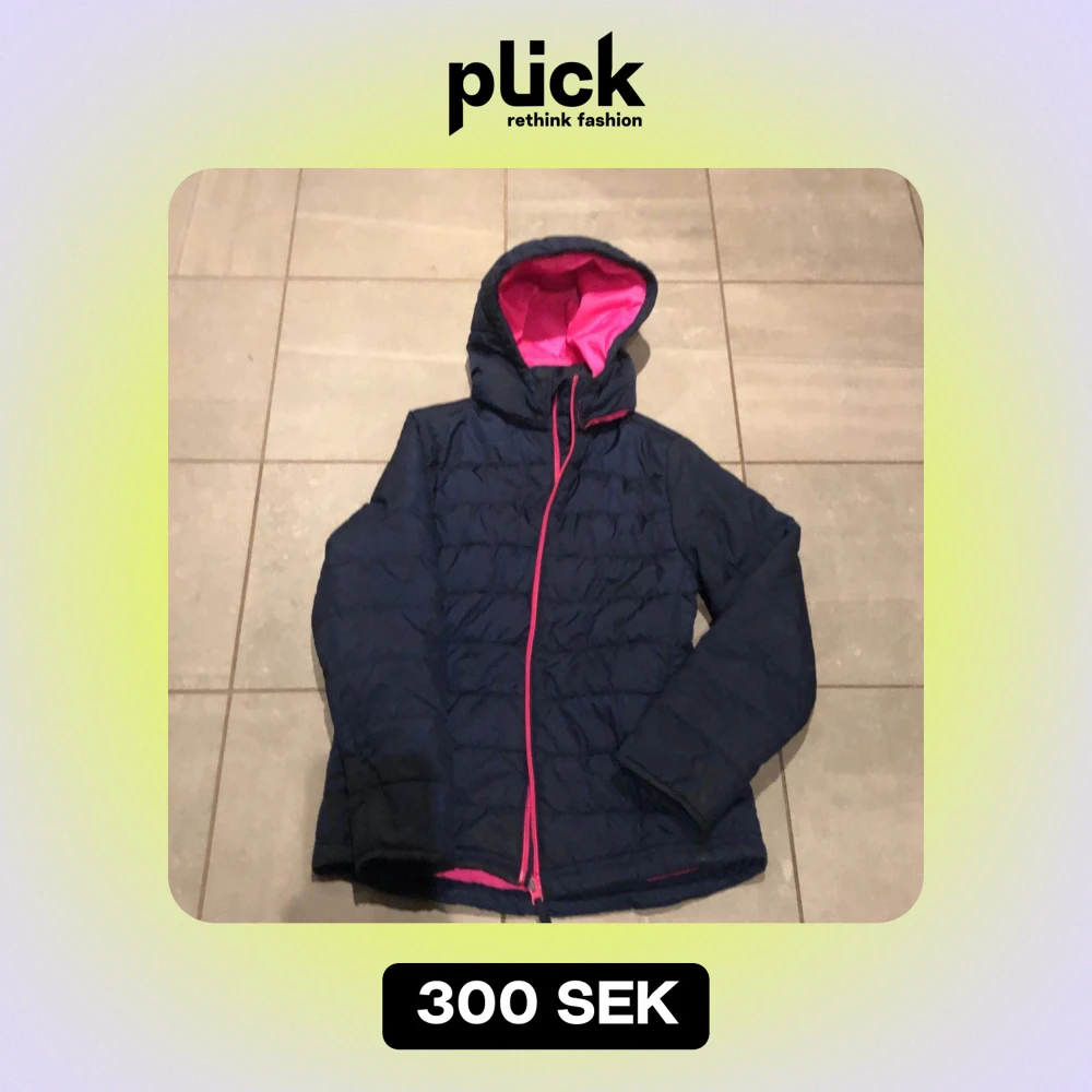 Säljer en snygg mörkblå pufferjacka från True North med en cool rosa insida. Jackan har en dragkedja i rosa och en praktisk huva. Perfekt för kyliga dagar och håller dig varm och bekväm. Passar bra för både höst och vinter!