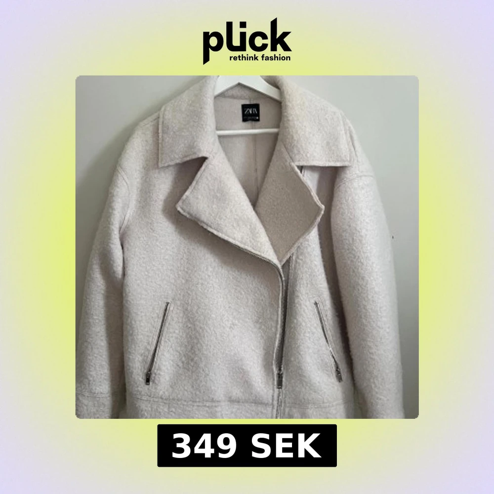 Snygg vit jacka från Zara i ullmix med stor krage och asymmetrisk dragkedja framtill. Jackan har två fickor med silverfärgade dragkedjor och en mjuk, lite fluffig yta. Perfekt för kyligare dagar och enkel att styla till olika outfits.