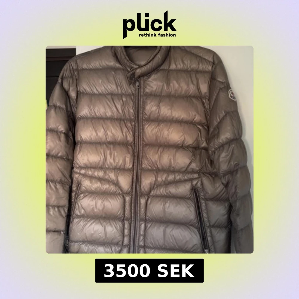 Snygg mörkgrå dunjacka från Moncler med quiltad design och klassisk logga på ärmen. Jackan har dragkedja framtill och två sidofickor med dragkedja. Perfekt för kalla dagar och har en stilren look som funkar till alla dagar. Negativt är att det finns små fläckar på ryggen som knappast syns. Storlek 4/L och såklart äkta.