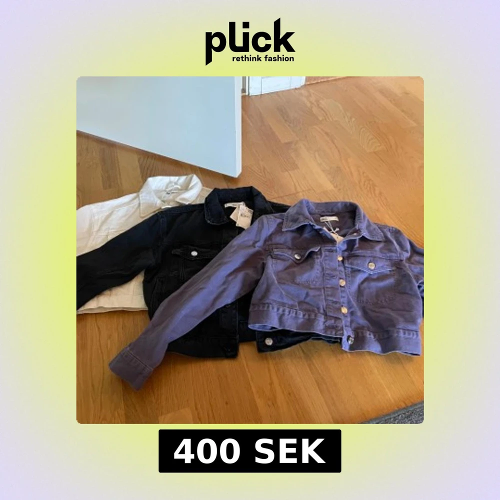 Säljer tre snygg jackor croppade jeansjackor med knappar framtill. Jackan har en klassisk krage och långa ärmar, perfekt för vår och sommar. Passar utmärkt för en trendig look! Lila och vita från Gina tricot och svarta från Mango. Alla tre storlek xs med prislapp på.