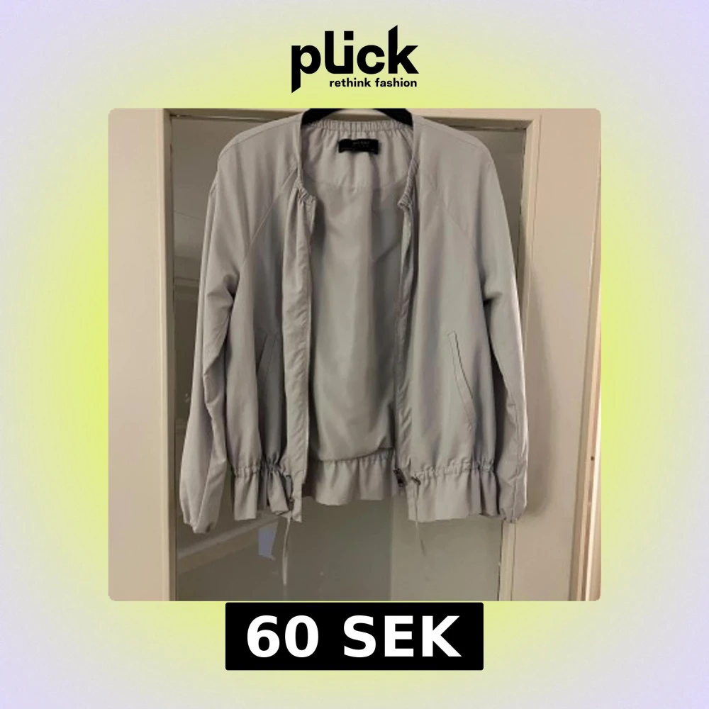 Säljer en stilren jacka från Zara Basic. Jackan har dragkedja framtill och elastiska detaljer vid midjan och ärmsluten. Perfekt för en avslappnad look. Ljusblå/grå.
