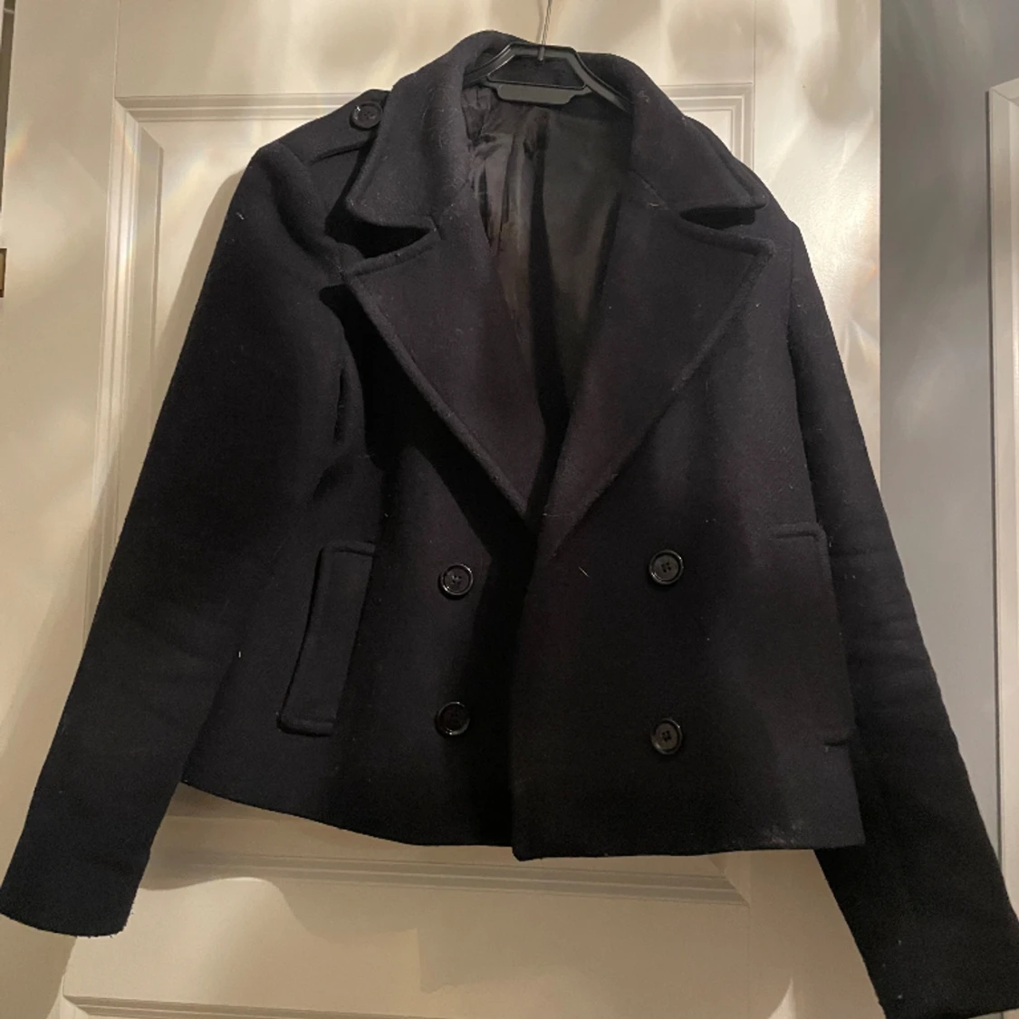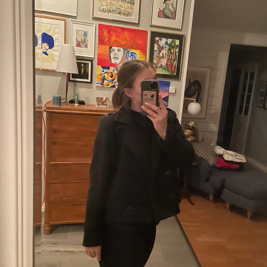 Jättefin marinblå kort kappa, perfekt nu till våren, säljer då den ej kommer t användning längre😊