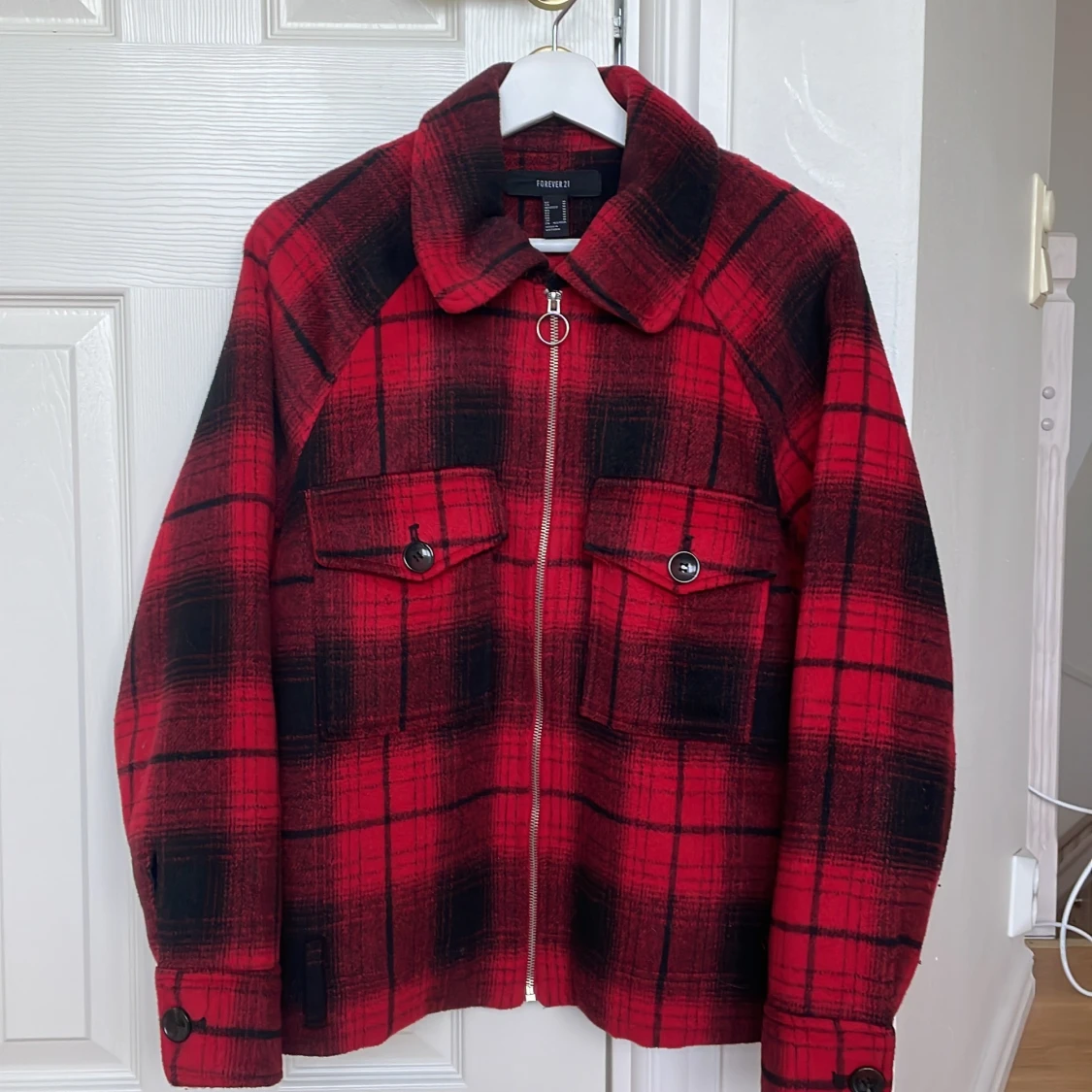 Säljer denna röda jacka från Forever 21. Knappt använd och inga defekter. Storlek M men passar mig som är en S.