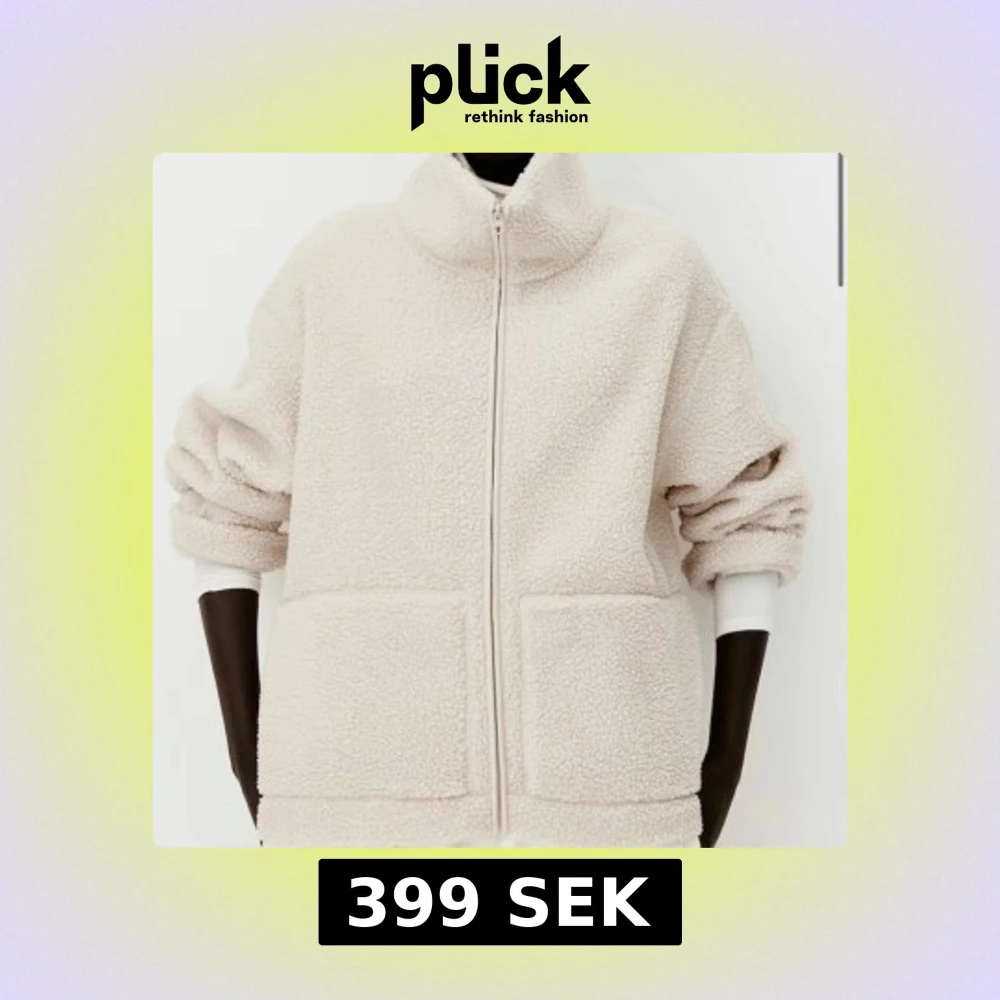 Mysig beige teddyjacka med dragkedja och hög krage. Jackan har en avslappnad passform och stora fickor framtill. Perfekt för kyliga dagar.