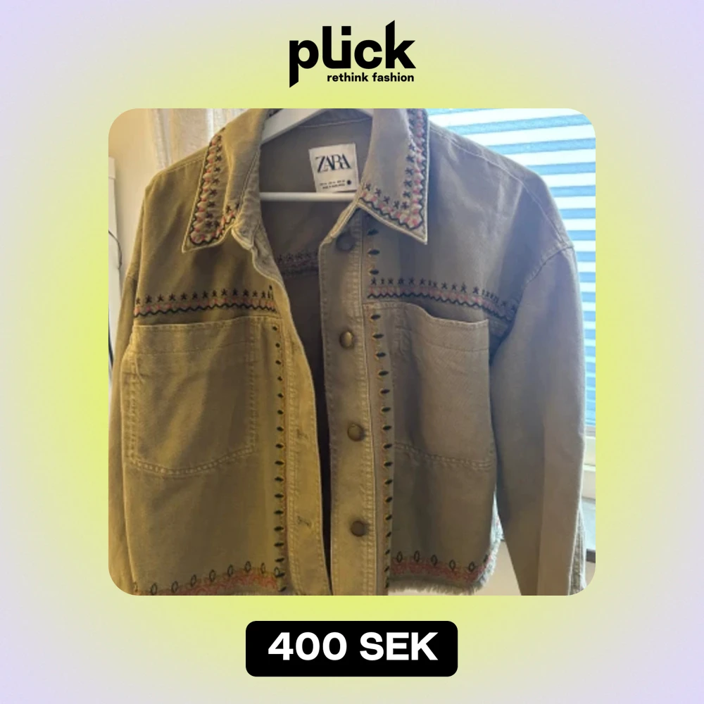 Grön jeans jacka med lite detaljer från zara. Storlek m och lite kortare i modellen. Jätte bra skick då den är använd två gånger ❤️💋🦦