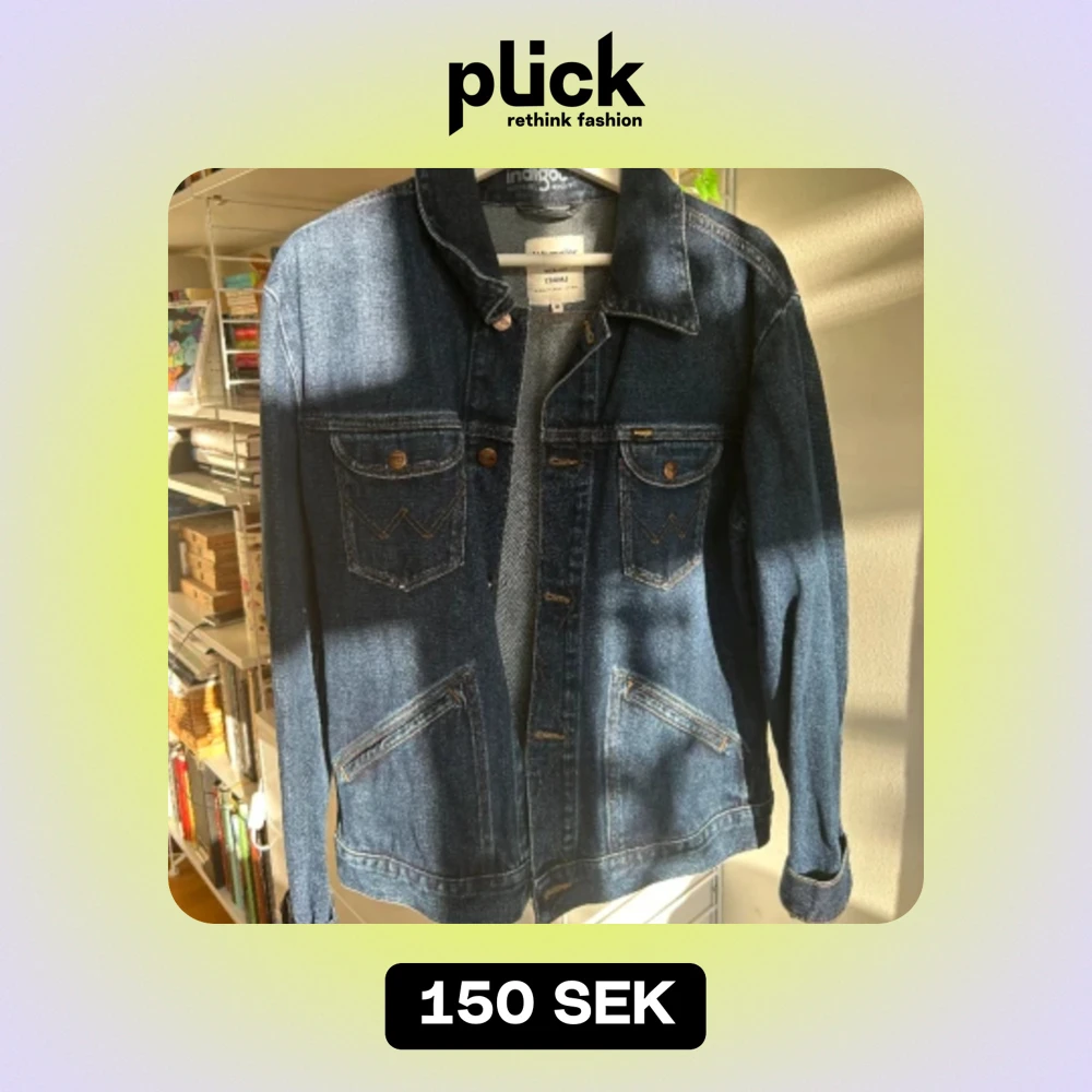 Mörkblå jeansjacka från wrangler i mycket fint skick! Lite oversized i modellen