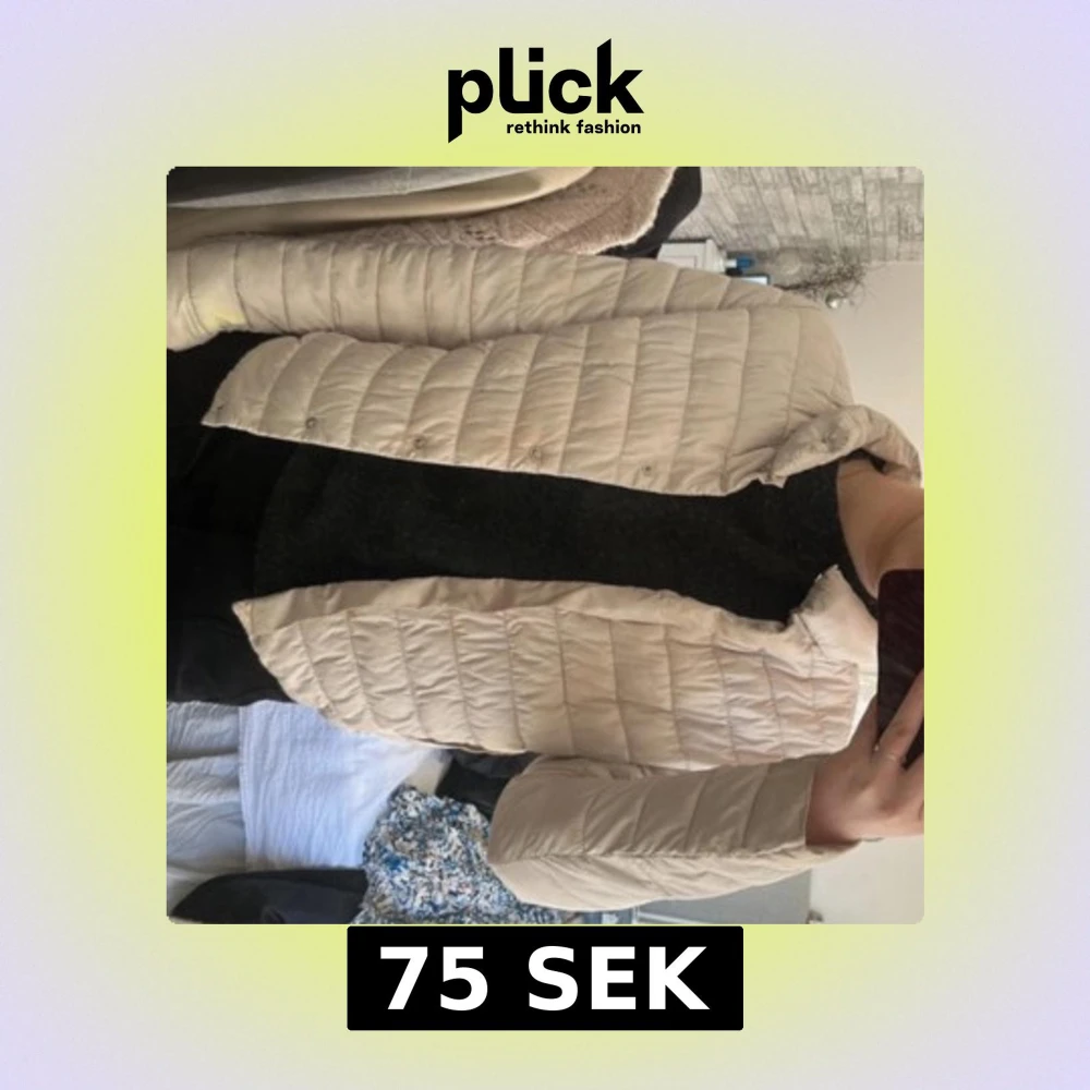 Säljer en beige quiltad pufferjacka med knappar framtill. Super snygg! Passar perfekt som vårjacka, i väldigt bra skick