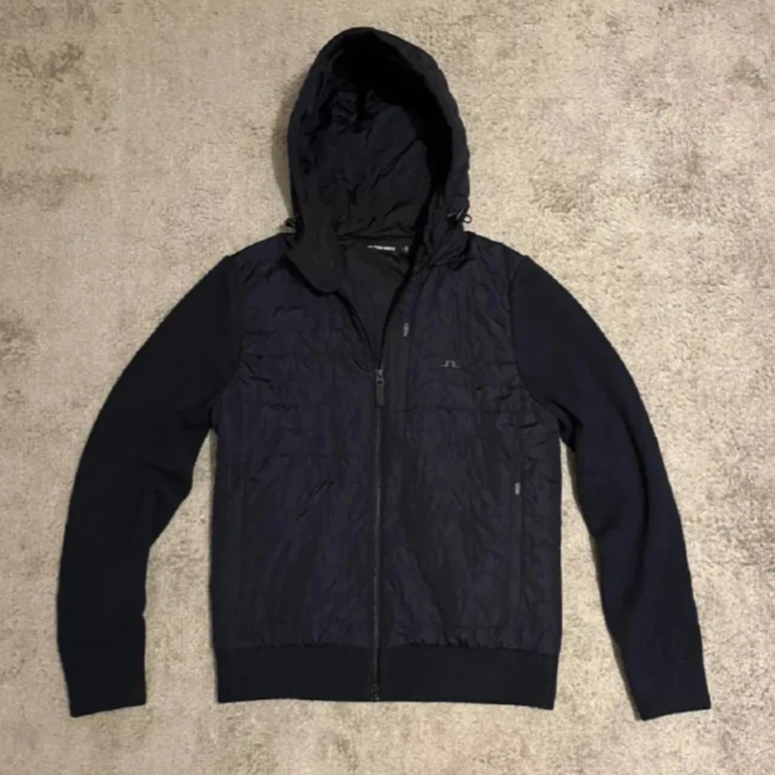 Snygg blå jacka ifrån J.Lindeberg. Inga synliga defekter bara ett hål i vänstra fickan som man ej ser eller märker av. Dragkedjan har tappat lite färg om man kollar noga men åter igen inget man märker.