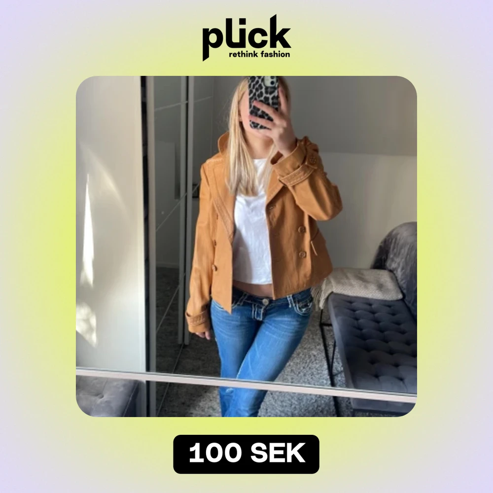 En jättefin äkta läder jacka som är färgen mango. Den är knappt använd och är super snygg