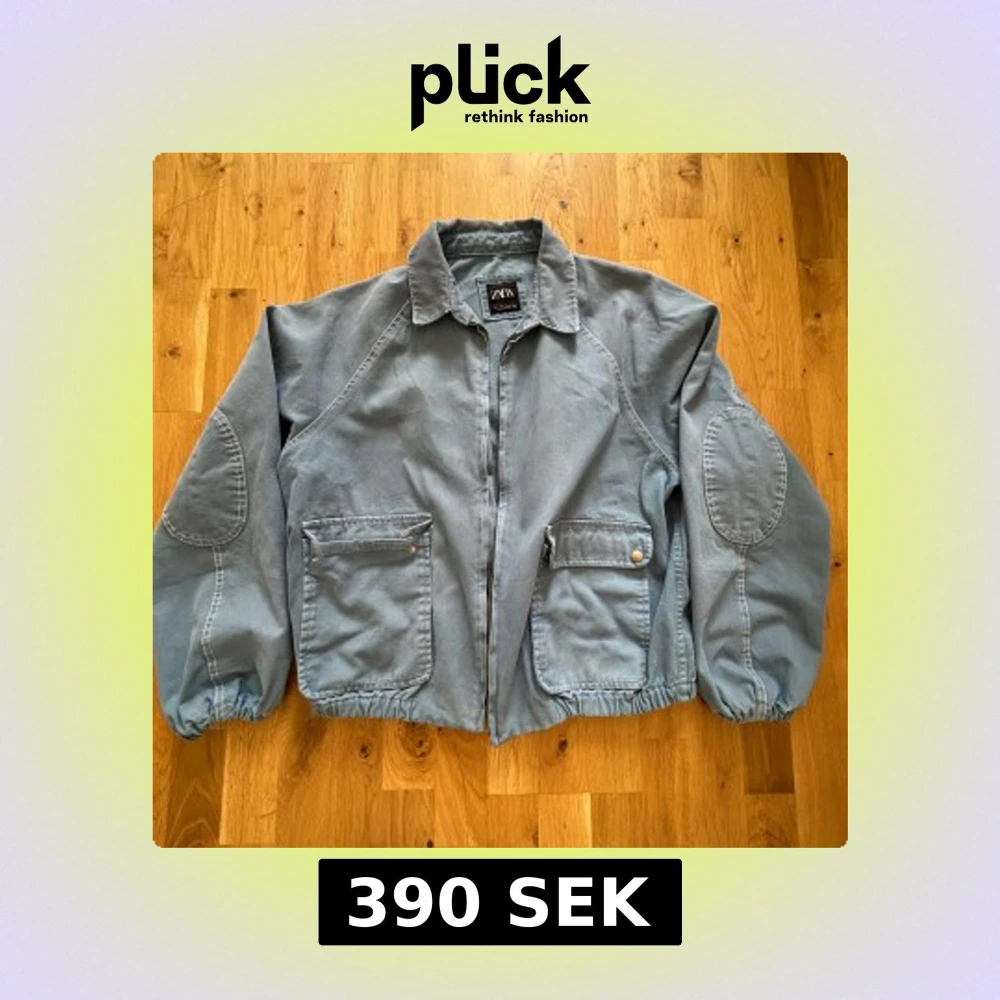 Snygg blå jeansjacka från Zara med dragkedja framtill, stora fickor med lock och tryckknappar ny pris 699