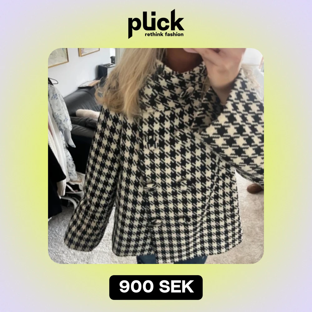 Jätte fin mönstrad tjock kappa som jag aldrig sett förut från Sara Kelly i fint skick, de ända är en påsyd knapp i gul tråd men verkligen inget man tänker på (se sista bild) ❤️
