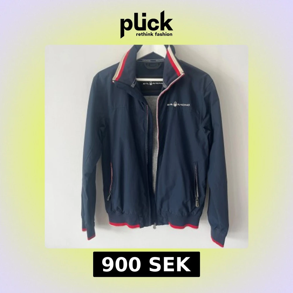 Snygg marinblå vindjacka från Sail Racing med röda och vita detaljer på krage och muddar. Jackan har dragkedja framtill, två fickor med dragkedja och grått foder. Broderad logga på bröstet och patch på ärmen ger en sportig vibe. Pris kan diskuteras vid snabb affär!