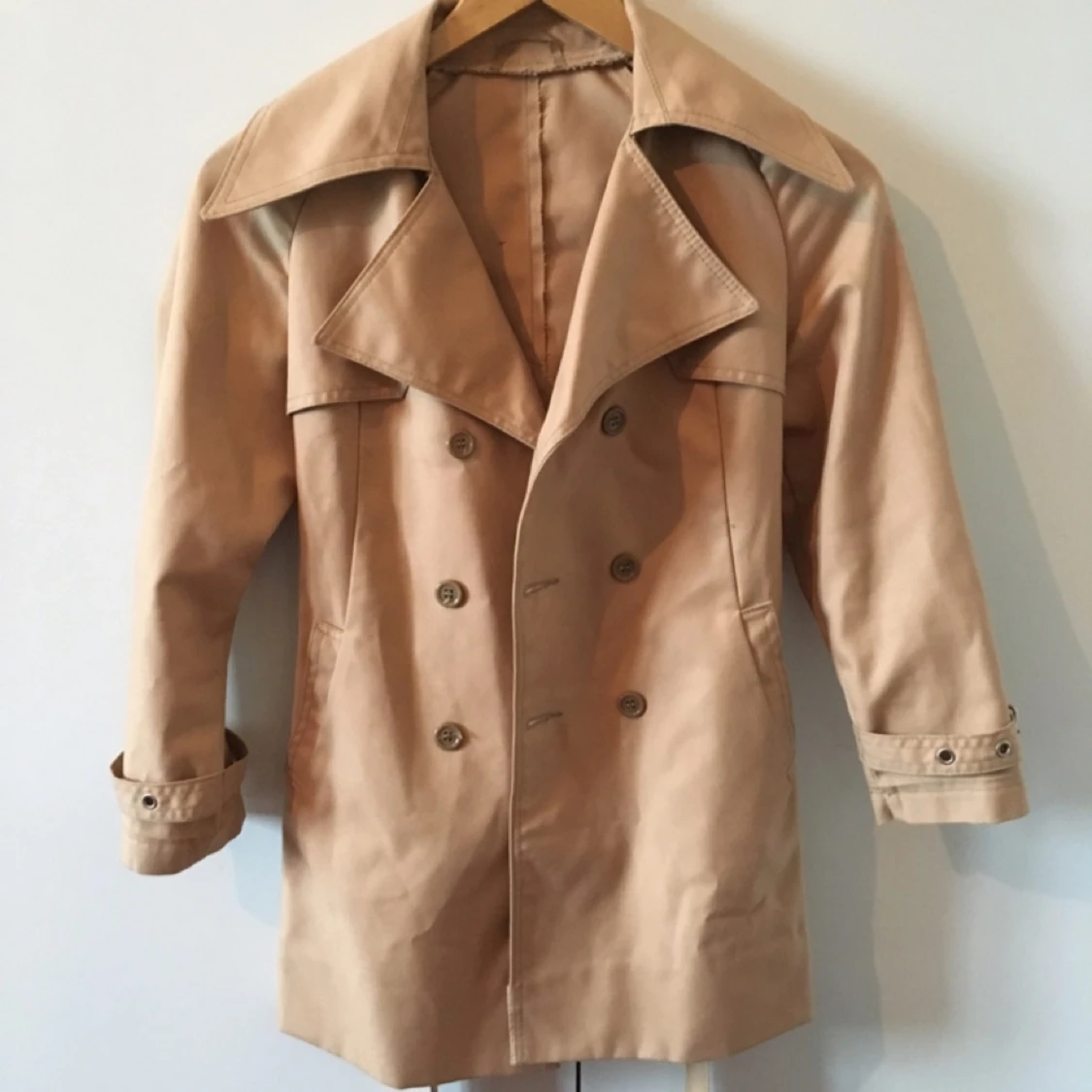 Beige vårkappa. 60-70-tal. Köpt secondhand och uppsydd av tidigare ägare. Skärp i midjan. Vänster till höger knäppning. Upphämtas i Göteborg eller skickas mot att köparen betalar frakten.