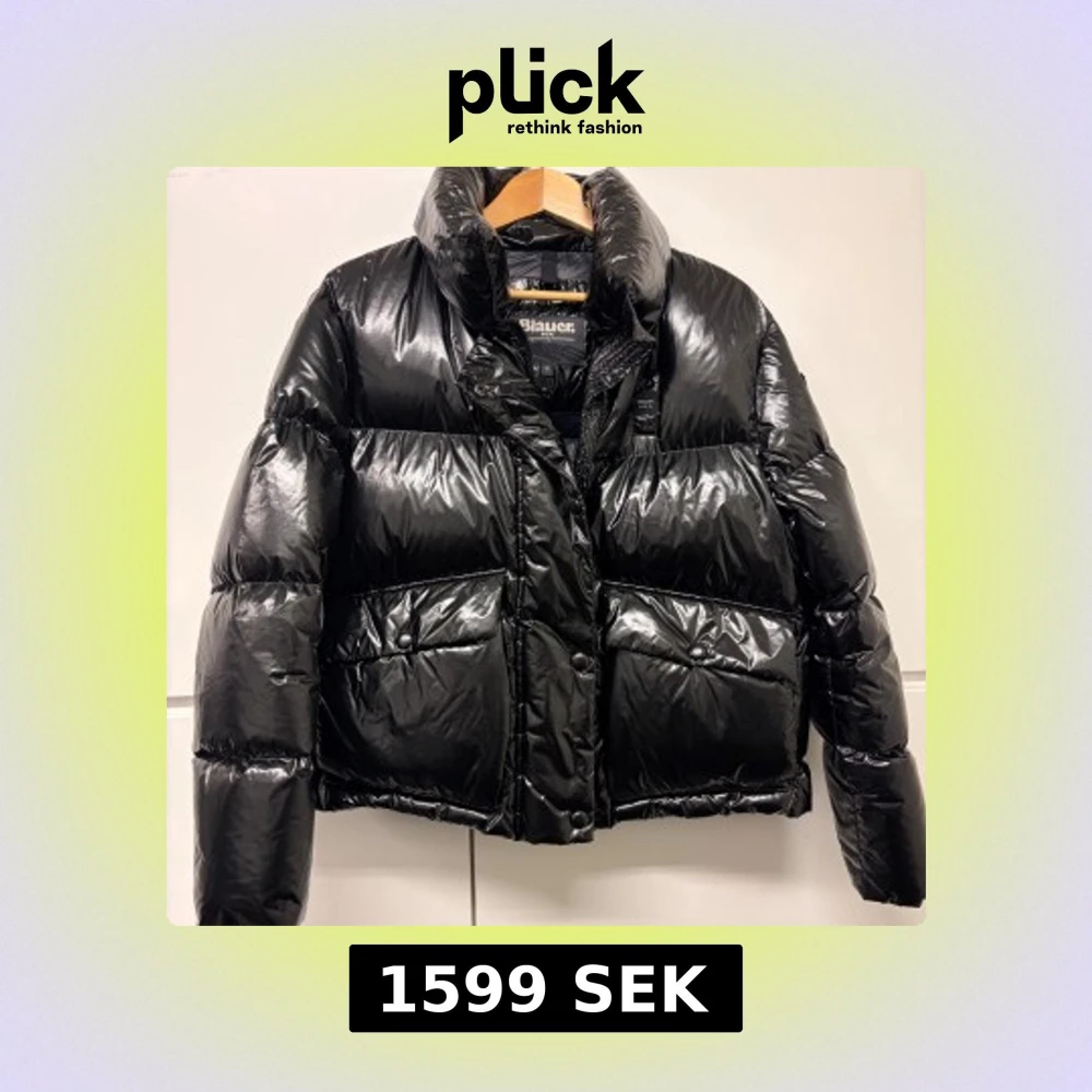 Snygg svart pufferjacka från Blauer med glansig finish och hög krage. Jackan har stora fickor framtill, Blauer-logga på ärmen och dragkedja med tryckknappar. Perfekt för kalla dagar när du vill hålla stilen och värmen.