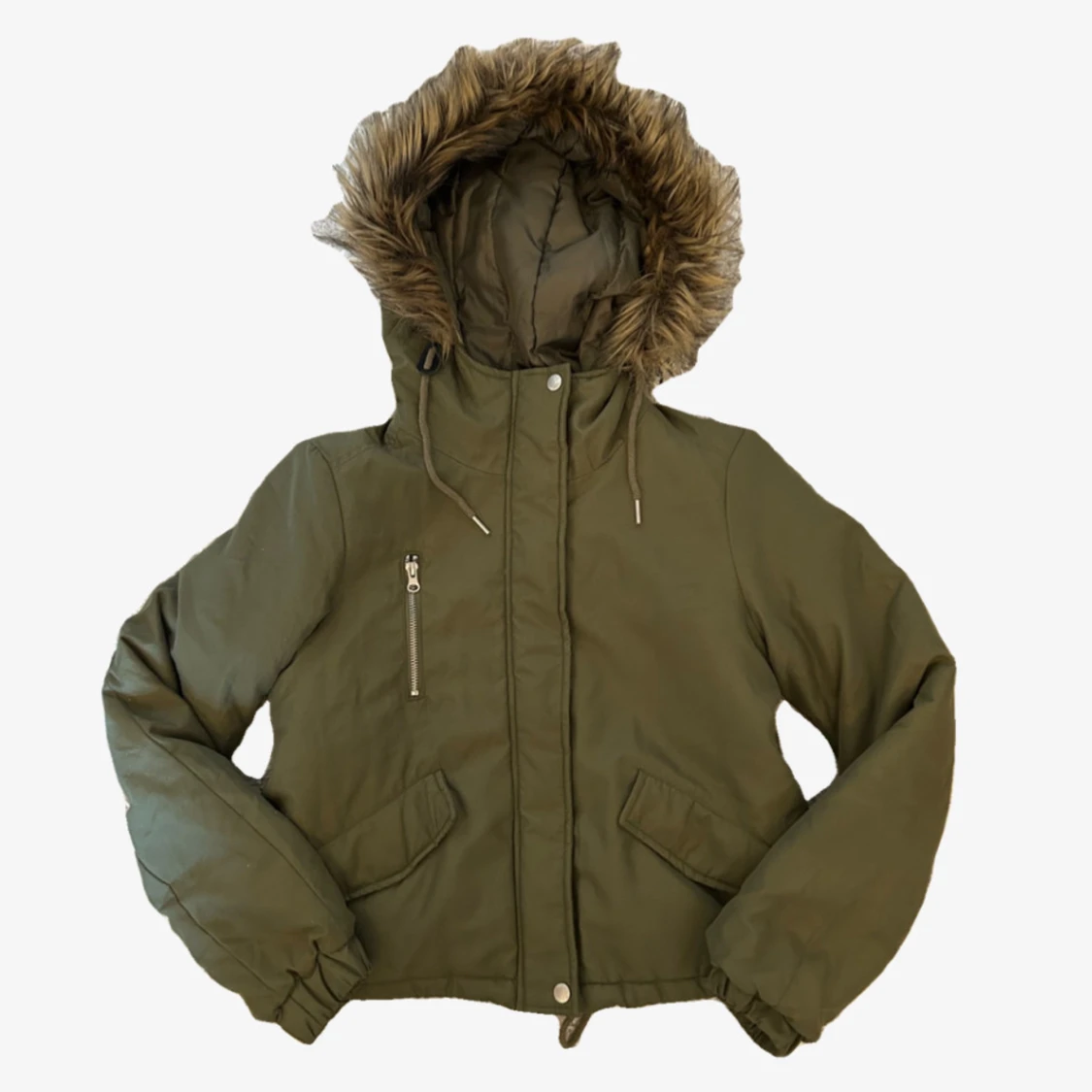 Supercool jacka som tyvärr är för liten för mig :) har päls vid luvan och är i bra kvalitet! Köpt på sellpy 💕