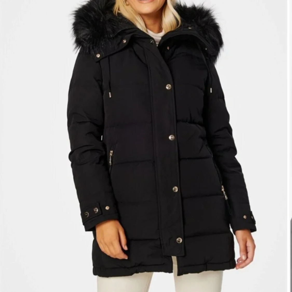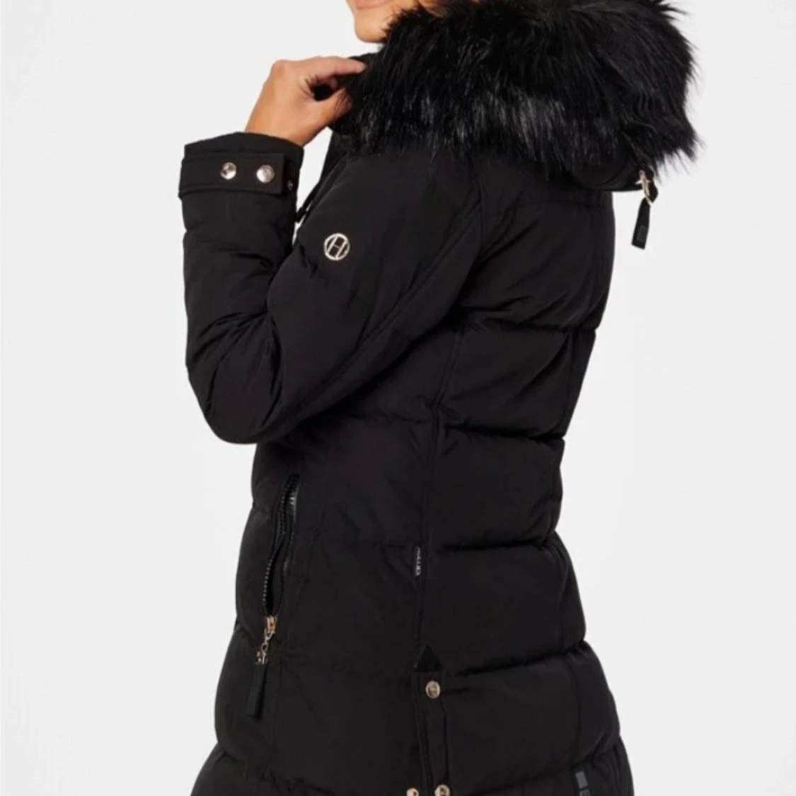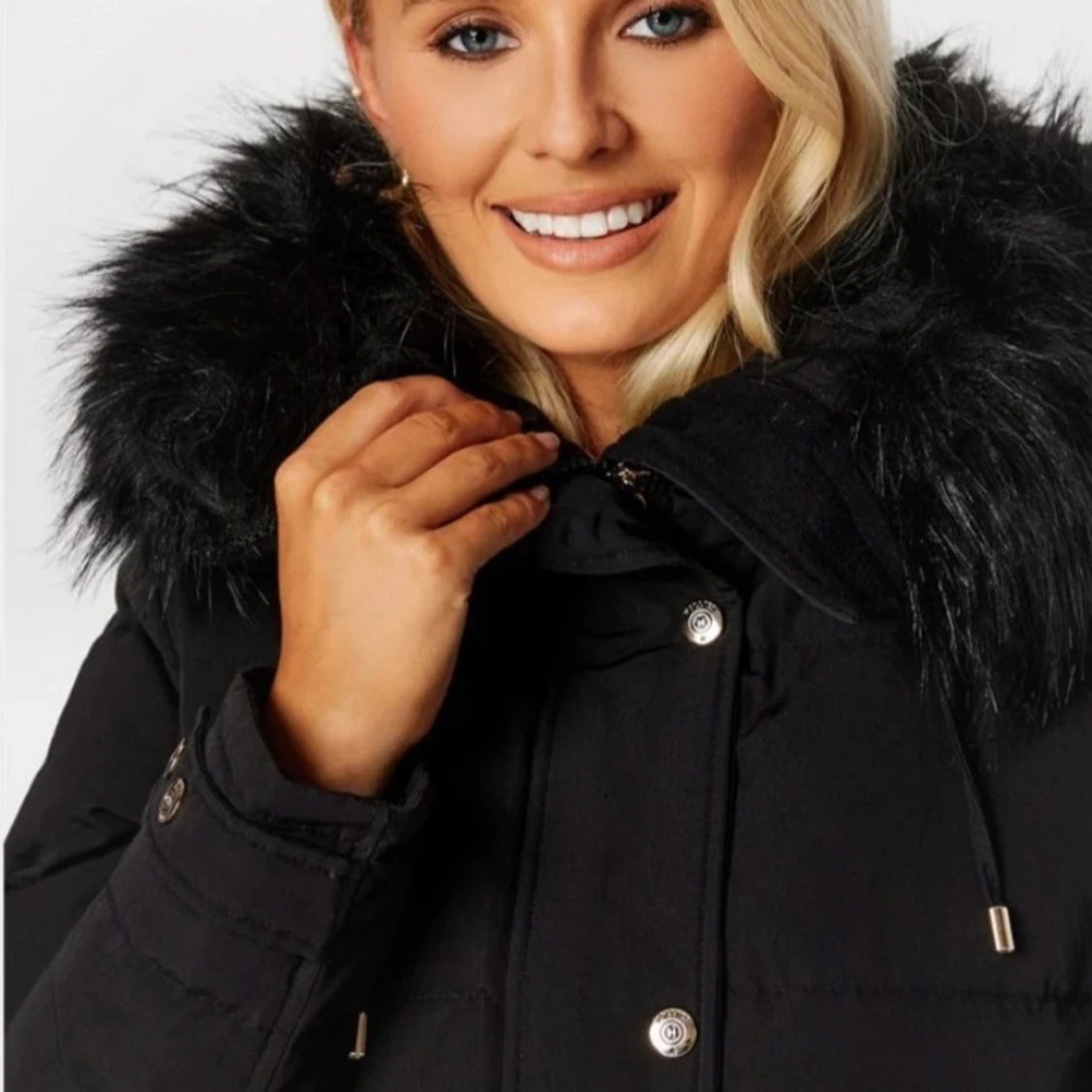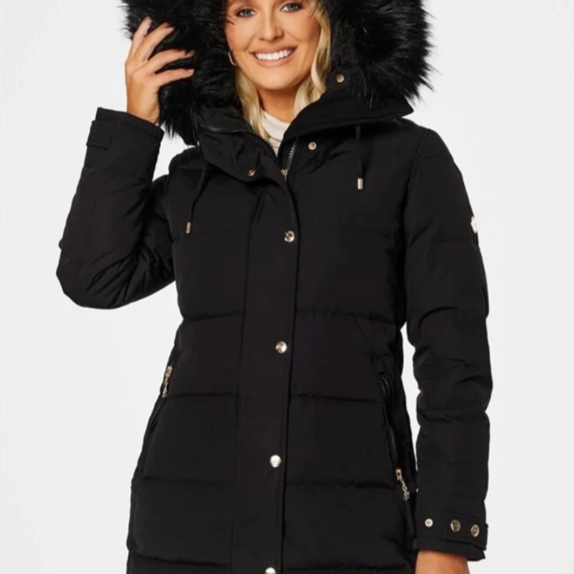 dunjacka från hollies Fodrade fickor med dragkedja Vadderad luva Tvåvägsdragkedja framtill med tryckknappar Avtagbar fuskpälskant på luvan Fodrad .