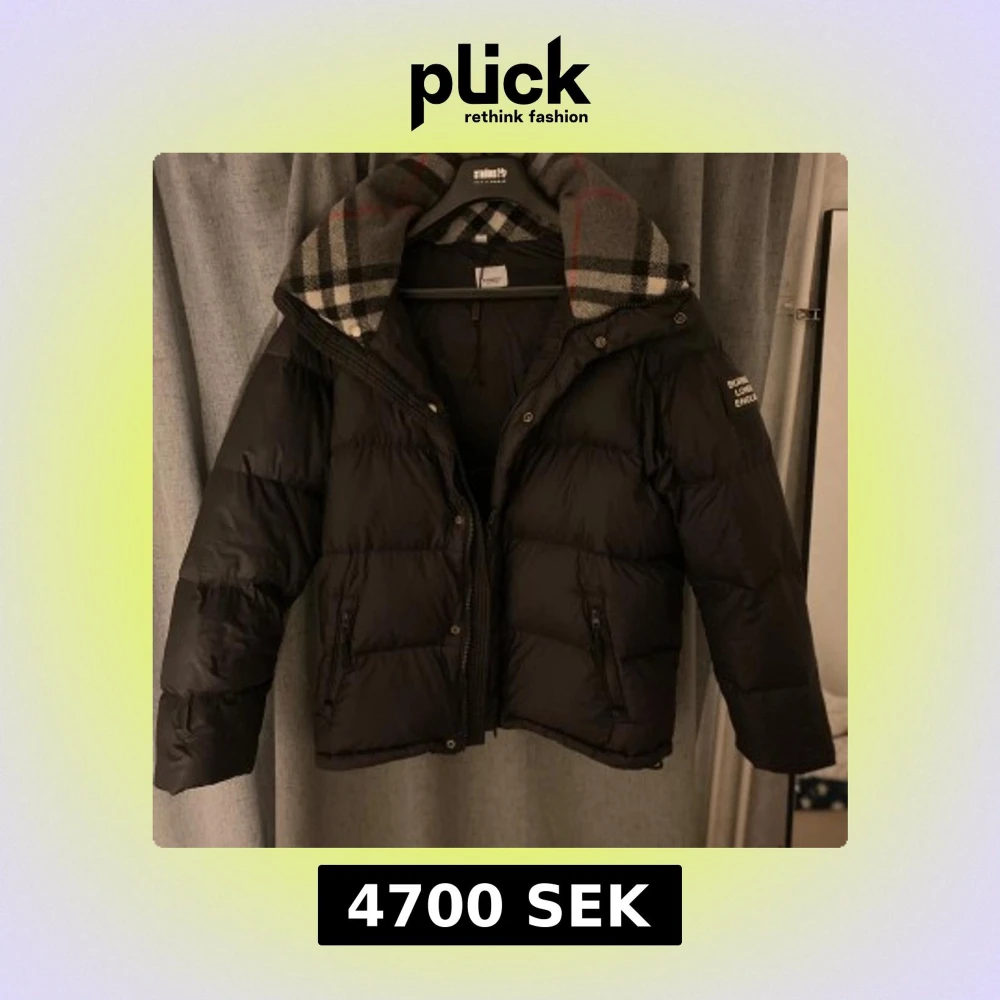 Stilren och varm Burberry-dunjacka i svart med klassisk rutmönstrad insida av kragen. Jackan är i storlek XL men fungerar som L och passar perfekt för kalla dagar. Den är mångsidig och kan även förvandlas till en väst tack vare avtagbara ärmar – perfekt för mildare väder. Jackan har två praktiska dragkedjefickor och snygga detaljer, inklusive märkets logga 'Burberry London England' på ärmen. Jackan är i bra skick och håller hög kvalitet, typiskt för Burberrys produkter. Behöver kemtvättas