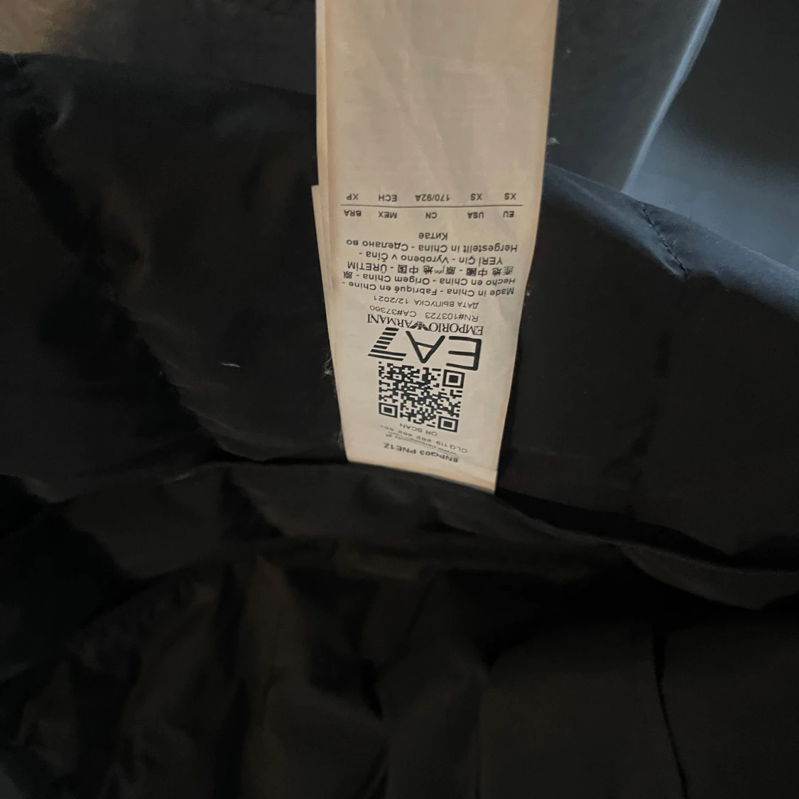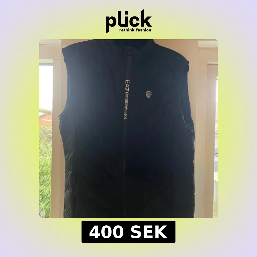 Snygg svart dunväst från Emporio Armani med dragkedja framtill och EA7-logga på bröstet. Perfekt för kyligare dagar med sin quiltade design som ger extra värme. Stilren och enkel att matcha med olika outfits.