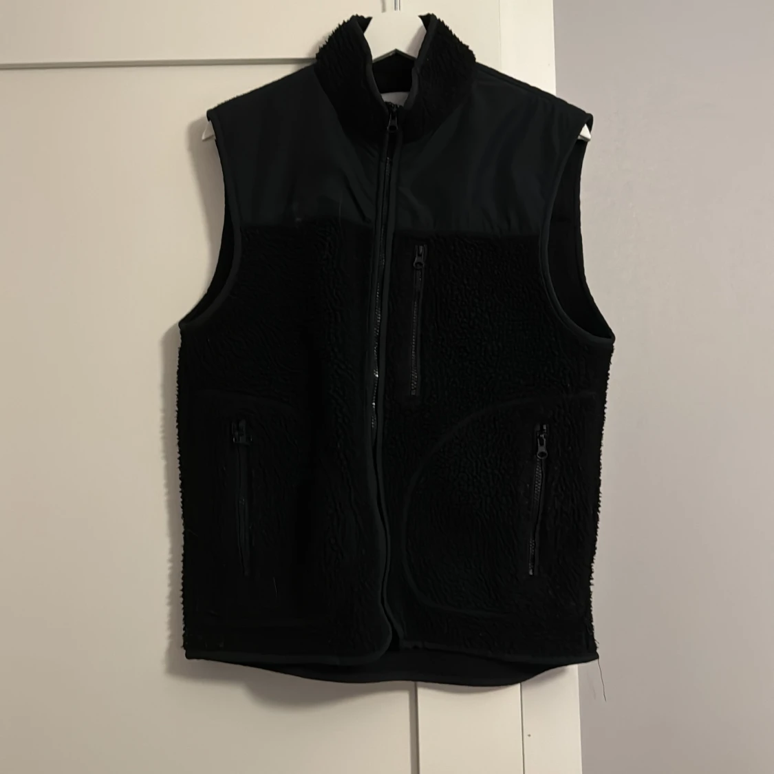 Snygg svart fleeceväst med dragkedja framtill och två praktiska fickor med dragkedjor. Perfekt för lager-på-lager under kyliga dagar. Ett bra skick på västen! Skick 9/10. Hör av er vid intresse!