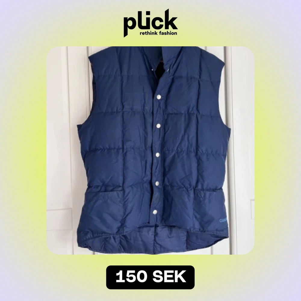 Nu säljer jag denna marin blåa västen gjort av vad jag tror är dun, den är använd par gånger men ända skavanken är det hålet ni ser i 3:dje bildrn , perfekt väst för hösten , hör av dig vid frågor 💕