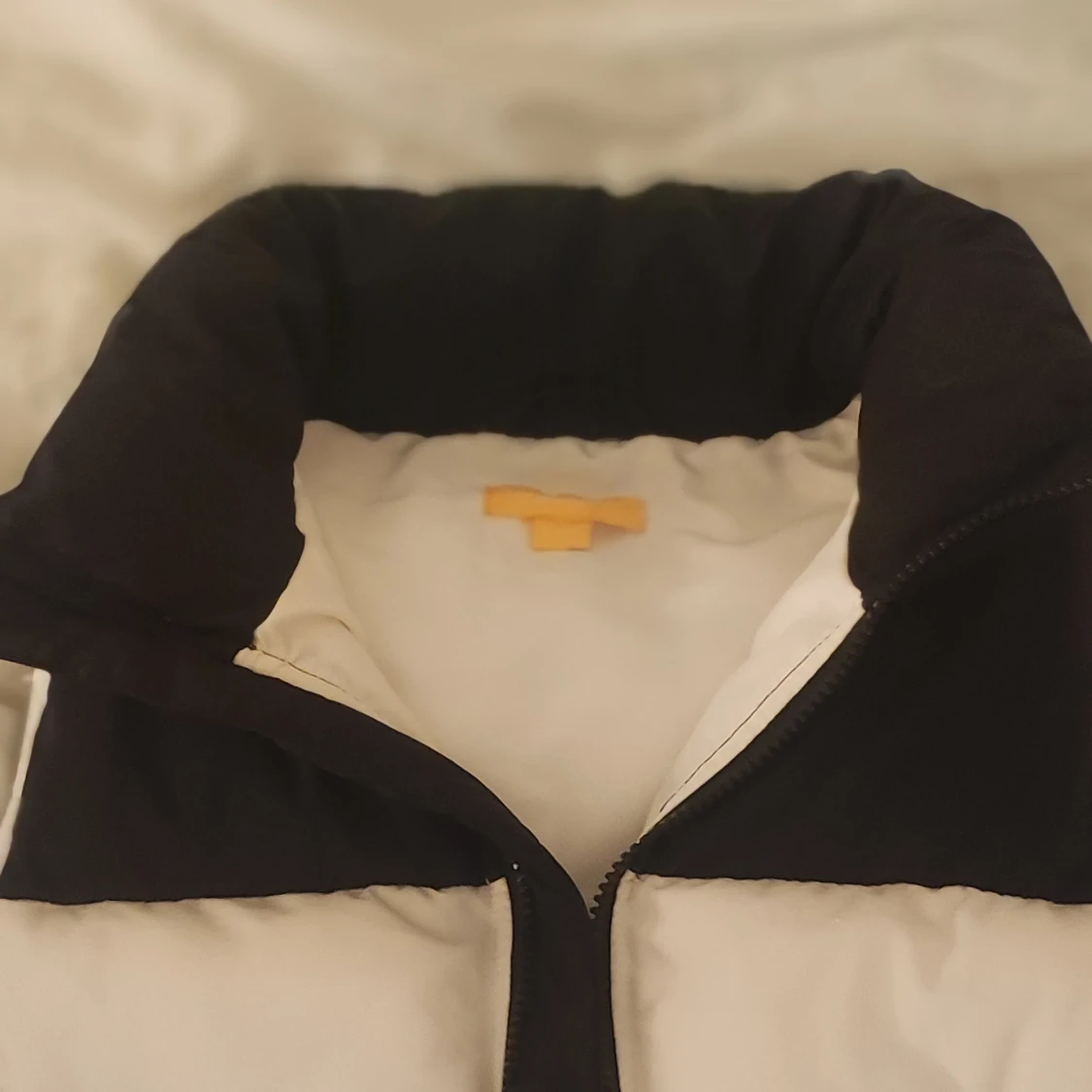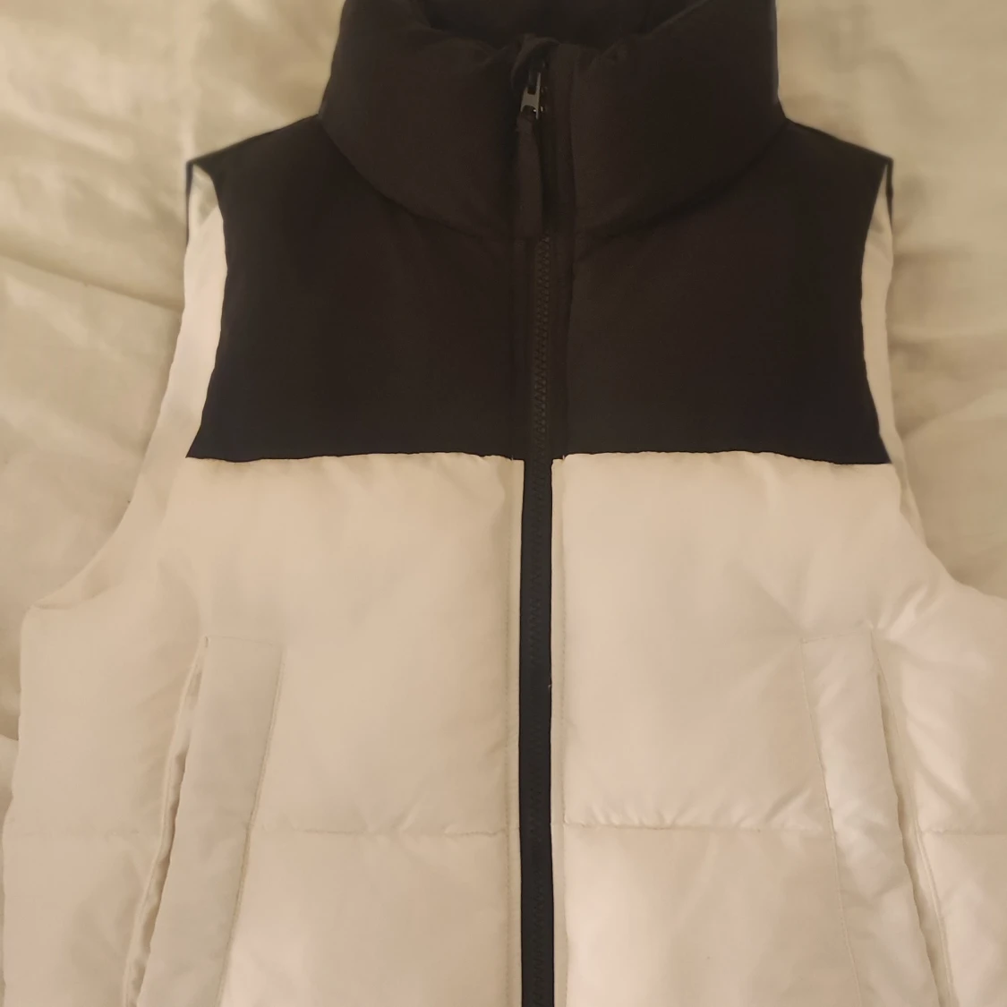 Svart-vit croppad dunväst från gina tricot, använd nån gång bara, strl 146-152, passar nån i xs också🤍