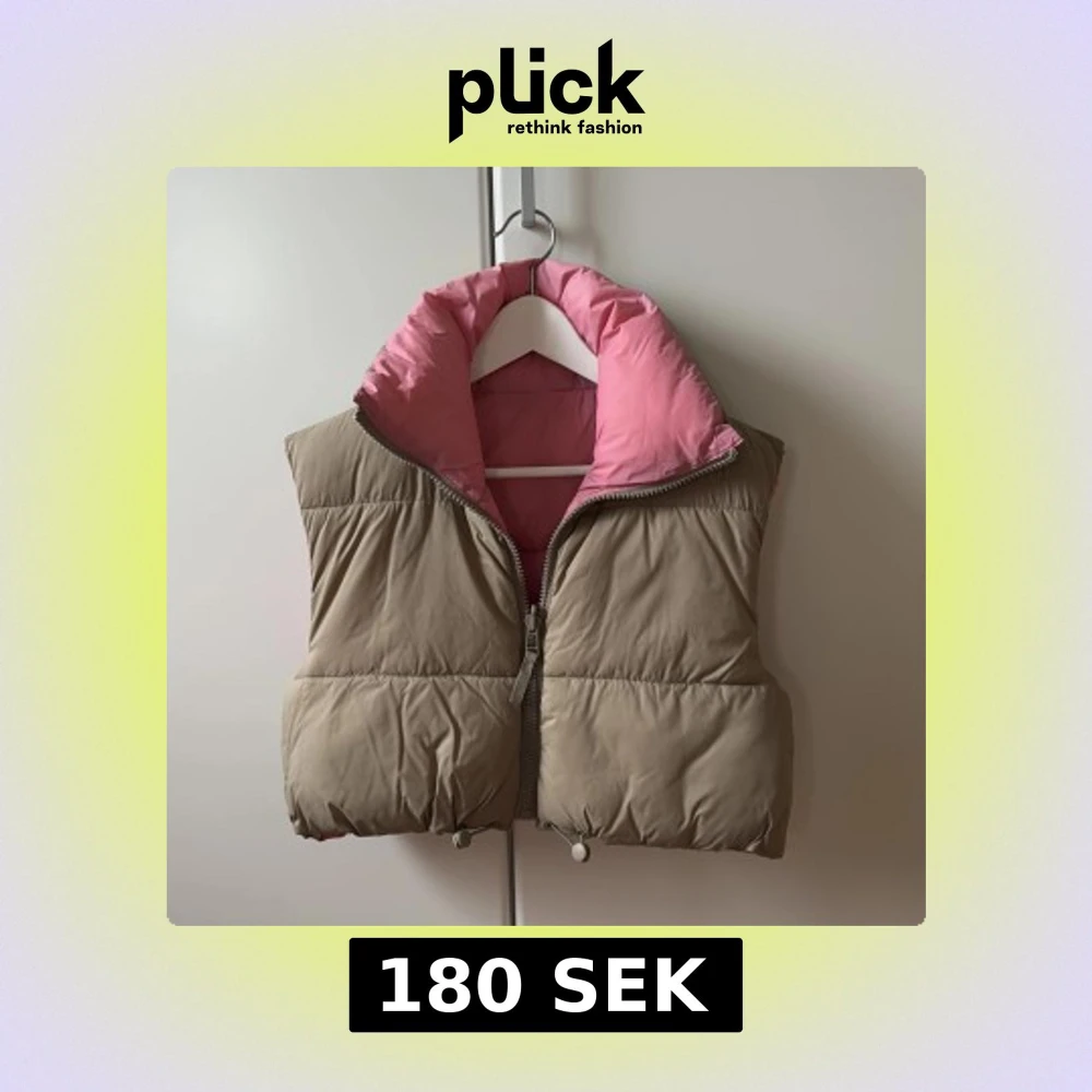 Nude + rosa croppad vändbar dunväst från ZARA. Aldrig använd , storlek small/medium.