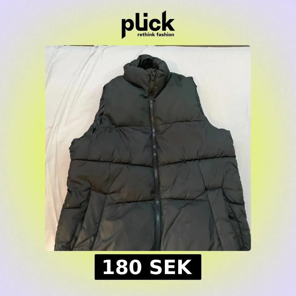 Säljer en svart dunväst med hög krage och hel dragkedja framtill. Västen har en quiltad design och är perfekt för lager-på-lager-stil. Passar både till jeans och hoodies för en avslappnad look.Dunvästen har storleken 152.