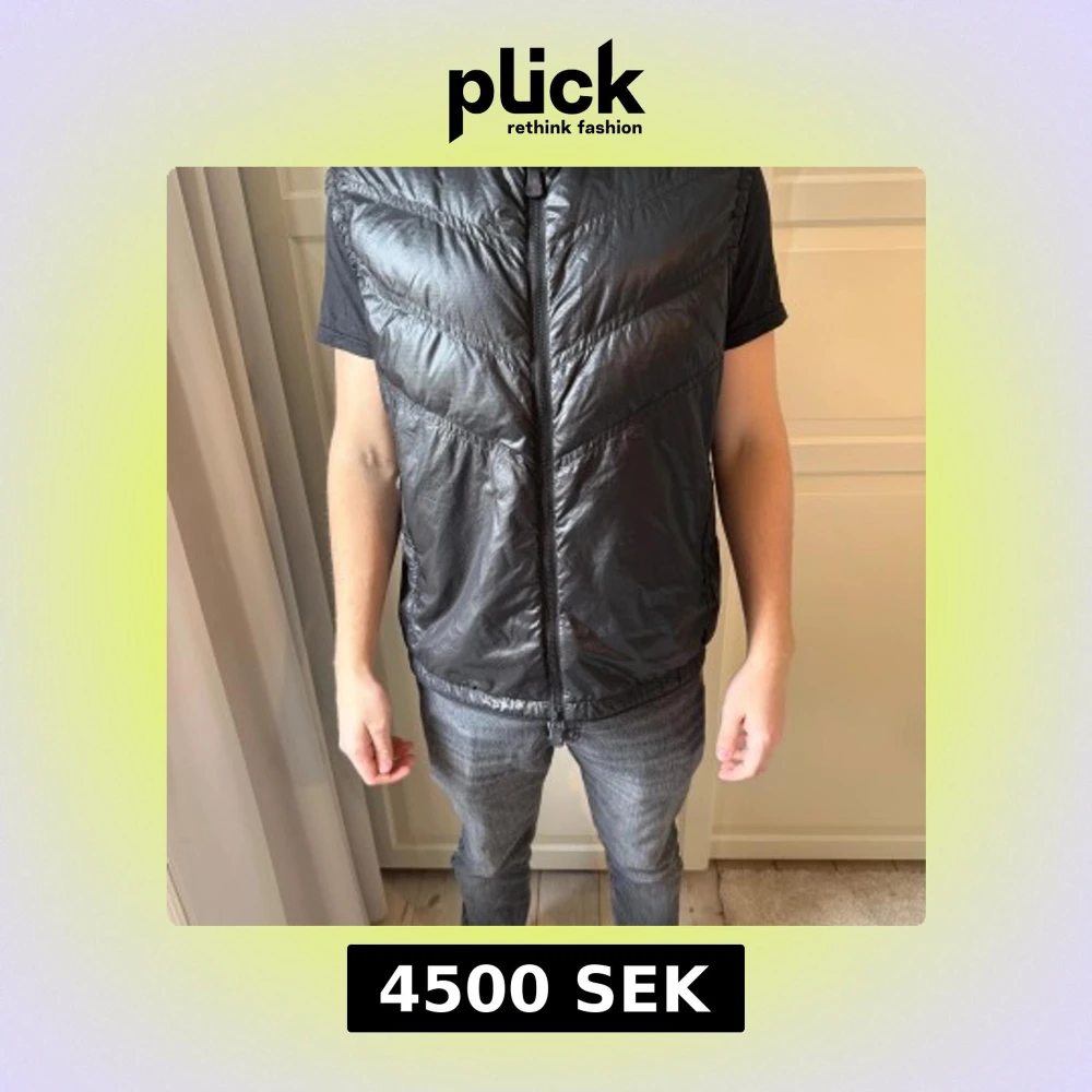 Säljer en snygg svart dunväst från Moncler med dragkedja framtill. Västen har en stilren design och är perfekt för lager-på-lager under kyligare dagar. Den har en diskret logga på baksidan och är lätt att matcha med olika outfits. Storlek 4 men sitter bra på mig som bär storlek M i det mesta. Använd endast få tal gånger.