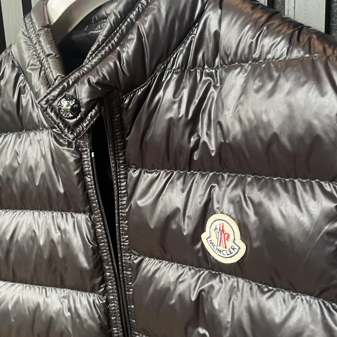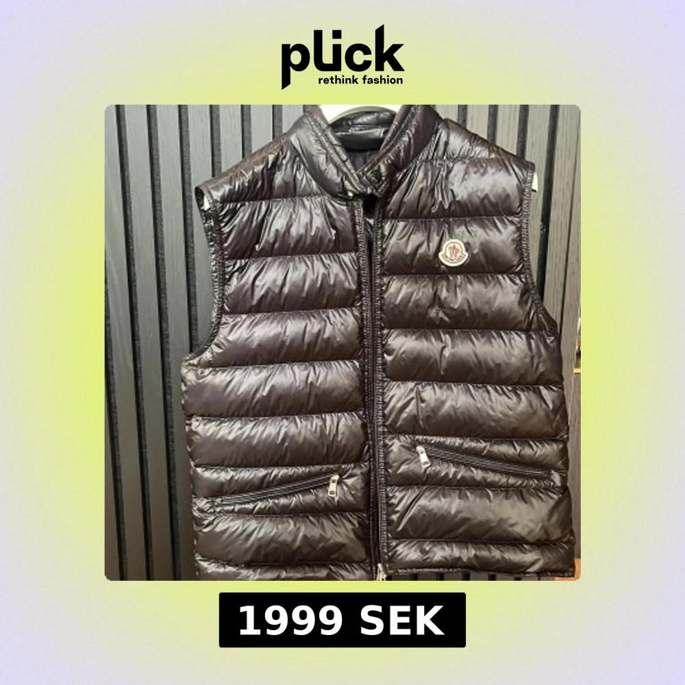 Snygg svart dunväst från Moncler med glansig finish och klassisk logga på bröstet. Västen har ståkrage, två snedställda fickor med dragkedja och quiltad design. Perfekt för lager-på-lager och har en modern, clean look. Västen är sparsamt använd och självklart äkta! Storlek TG 3 vilket motsvarar M-S