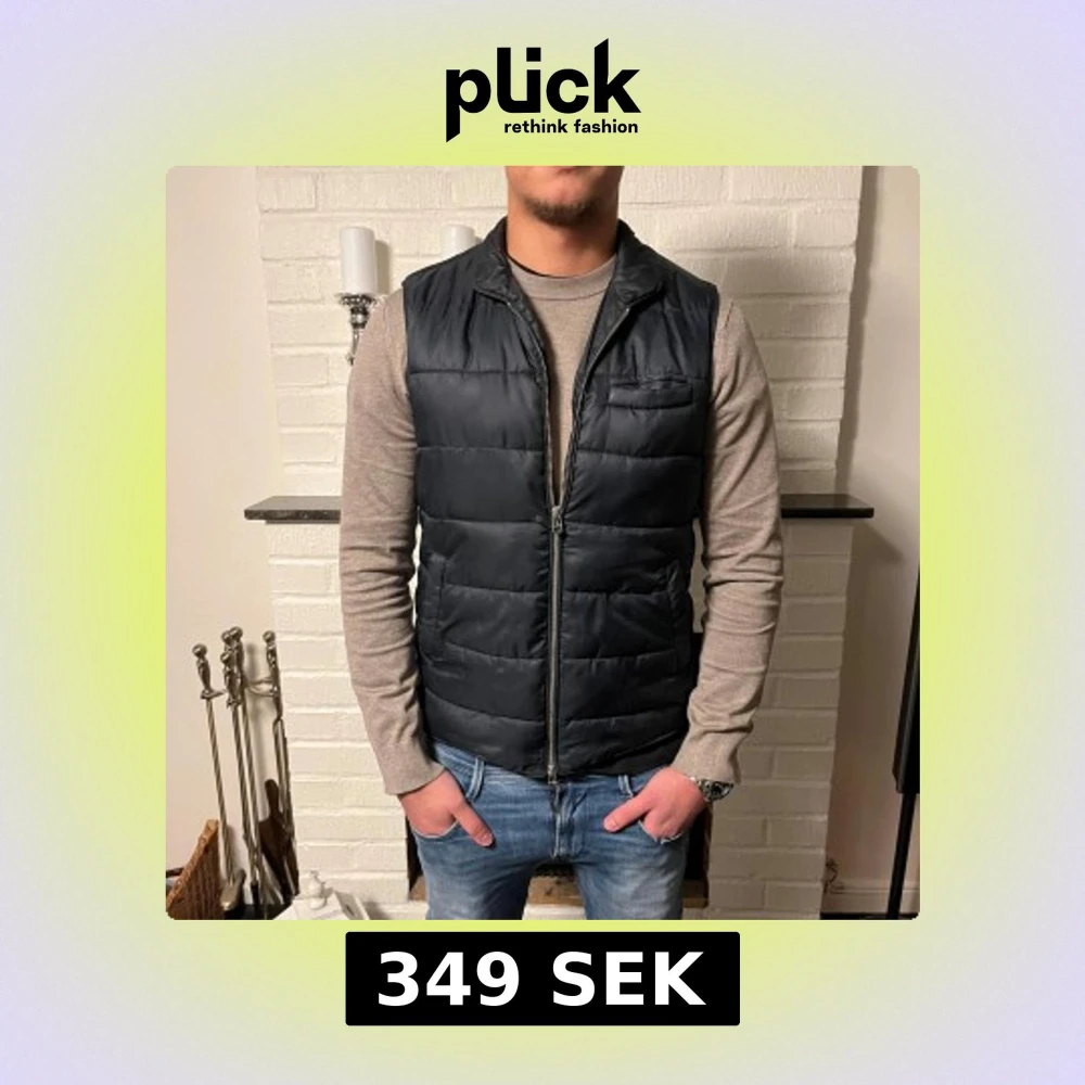 Snygg mörkblå quiltad dunväst med dragkedja och hög krage. Perfekt för kyligare dagar och enkel att matcha med olika outfits. Storlek Small köptes på NK Göteborg.