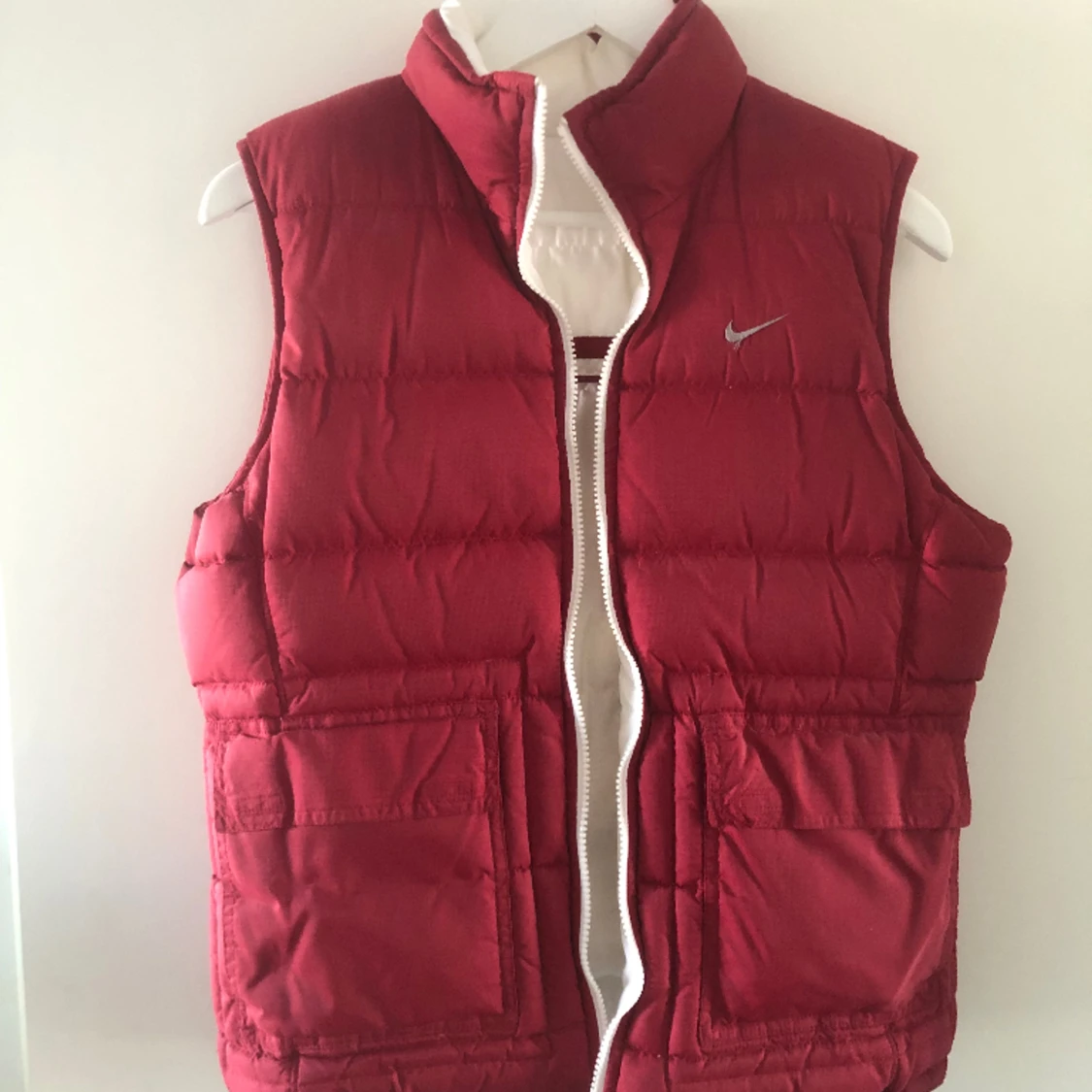 Säljer nu denna skitsnygga vintage nike dunvesten i storlek L, sitter dock snarare mer som M☺️Den går att vända till valfri färg, två västar i en alltså!😮💨🫶Den vita sidan har några märken i armhålan som syns på sista bilden