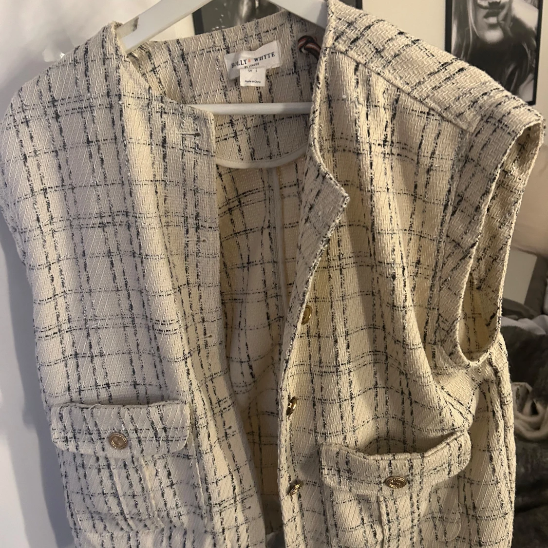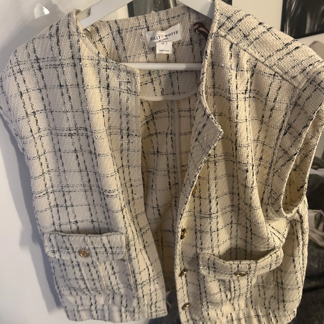 Snygg rutig väst i beige och svart. Västen har knappar framtill och praktiska fickor. Perfekt för att ge din outfit en stilren touch.