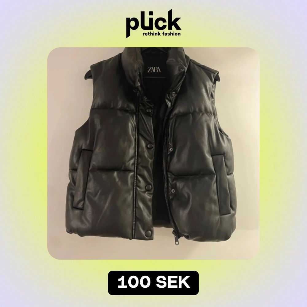 Säljer en svart dunväst från Zara i mycket bra skick. Västen har en stilren design med knappar och dragkedja framtill.