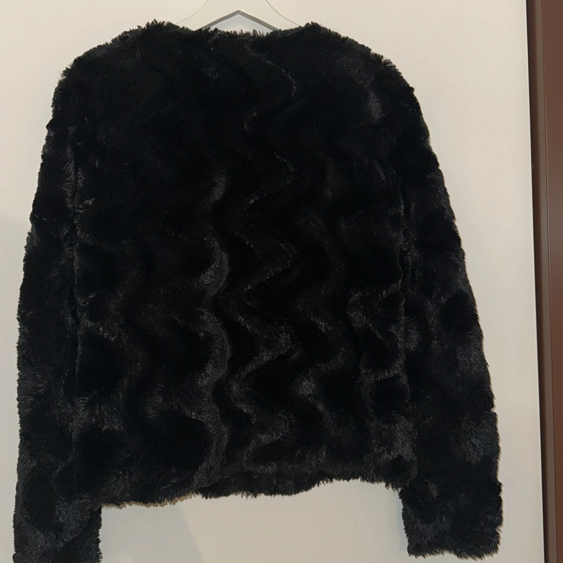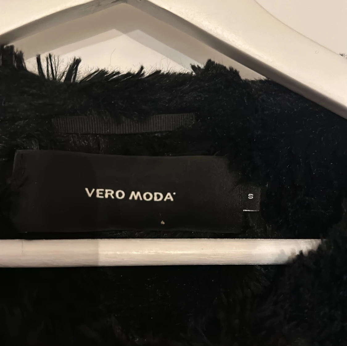 Snygg svart pälsjacka från Vero Moda i storlek S. Jackan har en fluffig och mjuk textur, perfekt för att hålla dig varm och stilren under kyliga dagar. Den har långa ärmar och en klassisk passform.