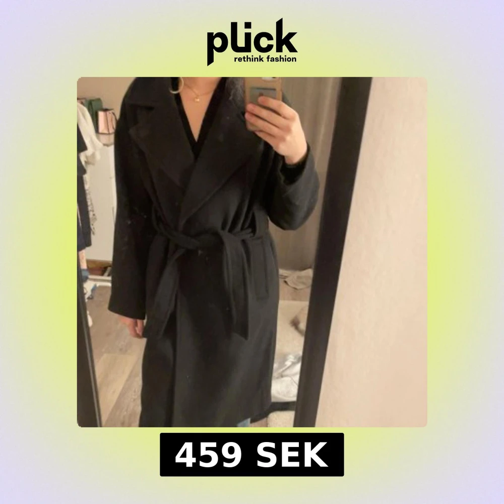 Snygg svart kappa med bälte. Perfekt för höst- eller vårsäsongen med sin långa design och klassiska snitt. Köpte för ungefär 600kr för 1/2 år sedan men den har aldrig kommit användning för mig. Hoppas den kommer till användning hos någon annan!