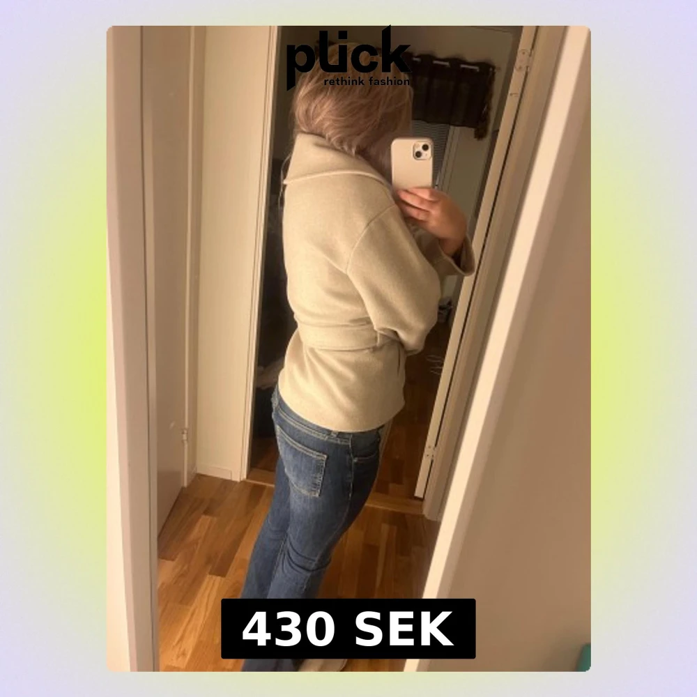 Snygg beige kappa från Vero Moda med bred krage. Jackan har ett bälte i midjan som knyts och två fickor framtill som inte ens har blivit öppnade då de är styng som man måste sprätta upp. Har aldrig använt den då jag tyckte den inte passar mig.