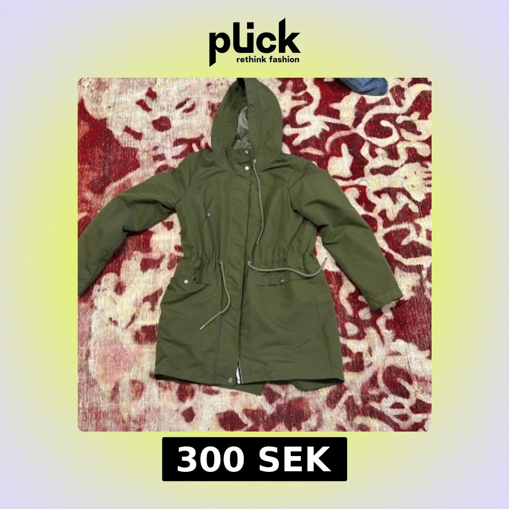Säljer en snygg grön parkajacka från Vero Moda. Jackan har en justerbar midja med dragsko och en praktisk huva. Perfekt för kyligare dagar med sina långa ärmar och knappar framtill. Ett måste för garderoben!