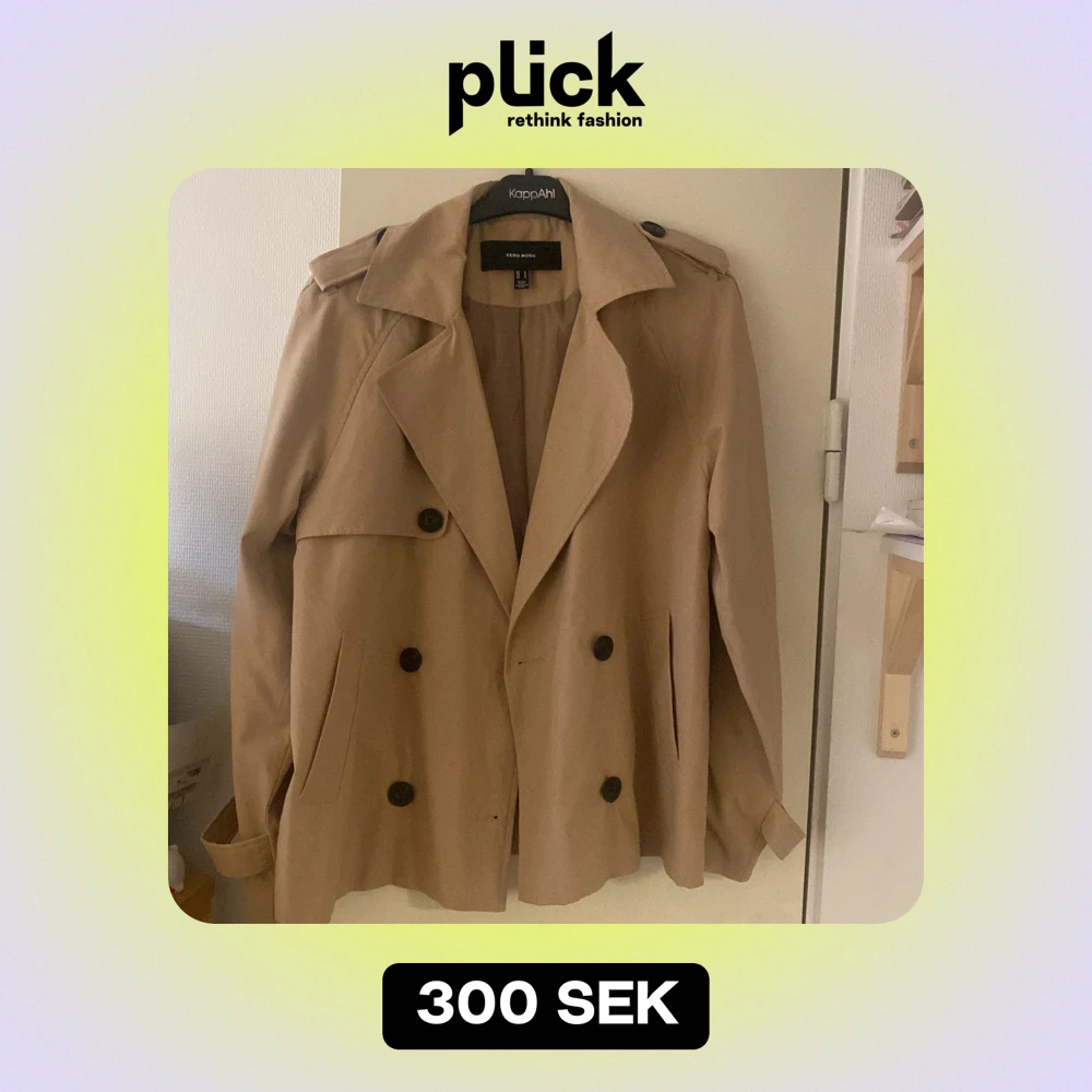 Säljer en snygg beige trenchcoat från veromoda i mycket bra skick. Jackan har en klassisk design med dubbelknäppning och stora knappar. Perfekt för höst och vår, med långa ärmar och stiliga detaljer vid axlarna. Passar både till vardags och lite finare tillfällen. Strl M