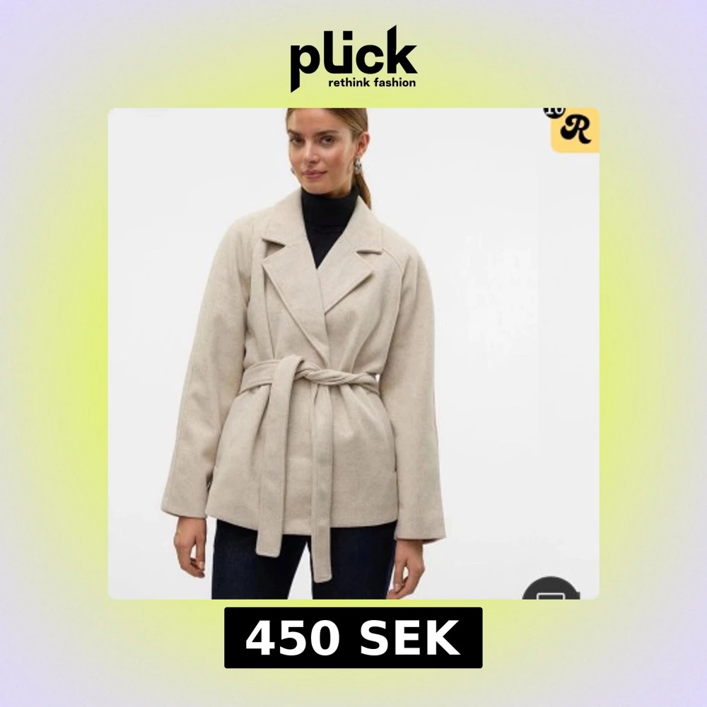 Stilren beige kappa från Vero Moda i storlek M. Jackan har klassisk krage, knytskärp i midjan och långa ärmar. Materialet är mjukt och känns ulligt, perfekt för kyligare dagar. Enkel och clean look som passar till det mesta. fickan har lossnat lite men syns knappt och kan sys ihop.