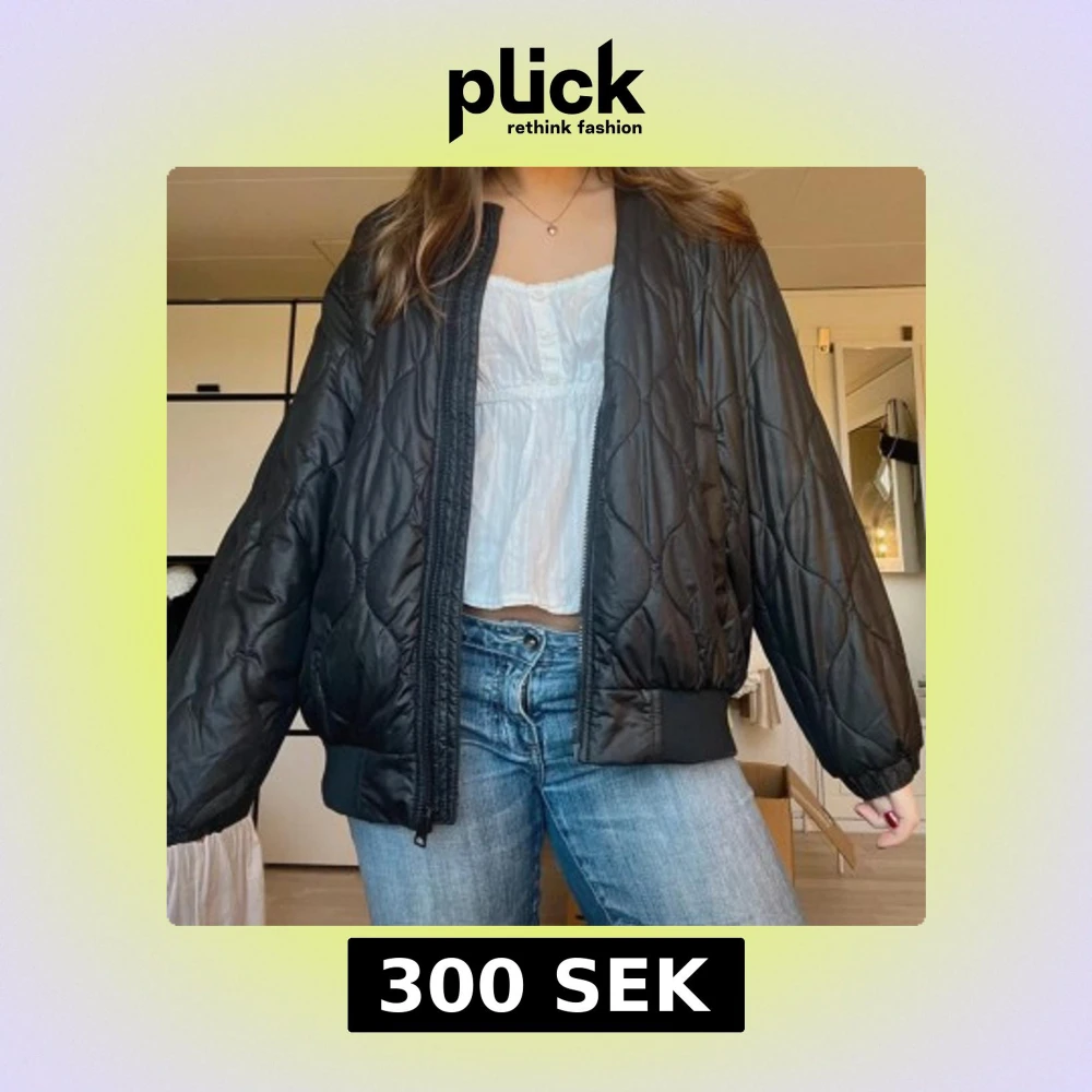 Snygg svart bomberjacka med quiltat mönster och dragkedja framtill. Perfekt för en cool och avslappnad stil. Jackan har långa ärmar och ribbade muddar vid ärmslut och nederkant.