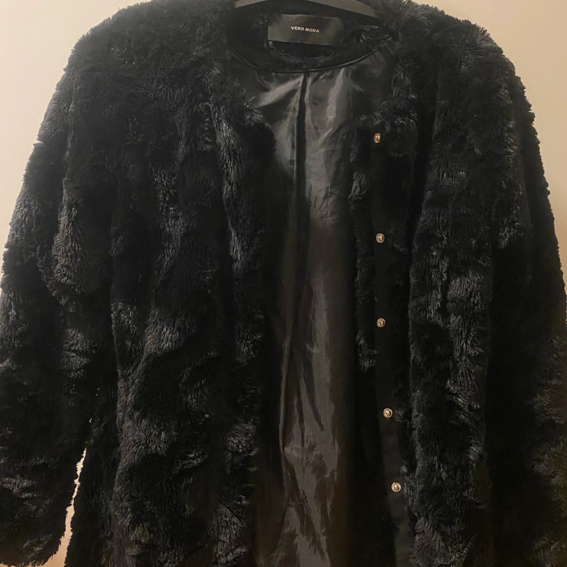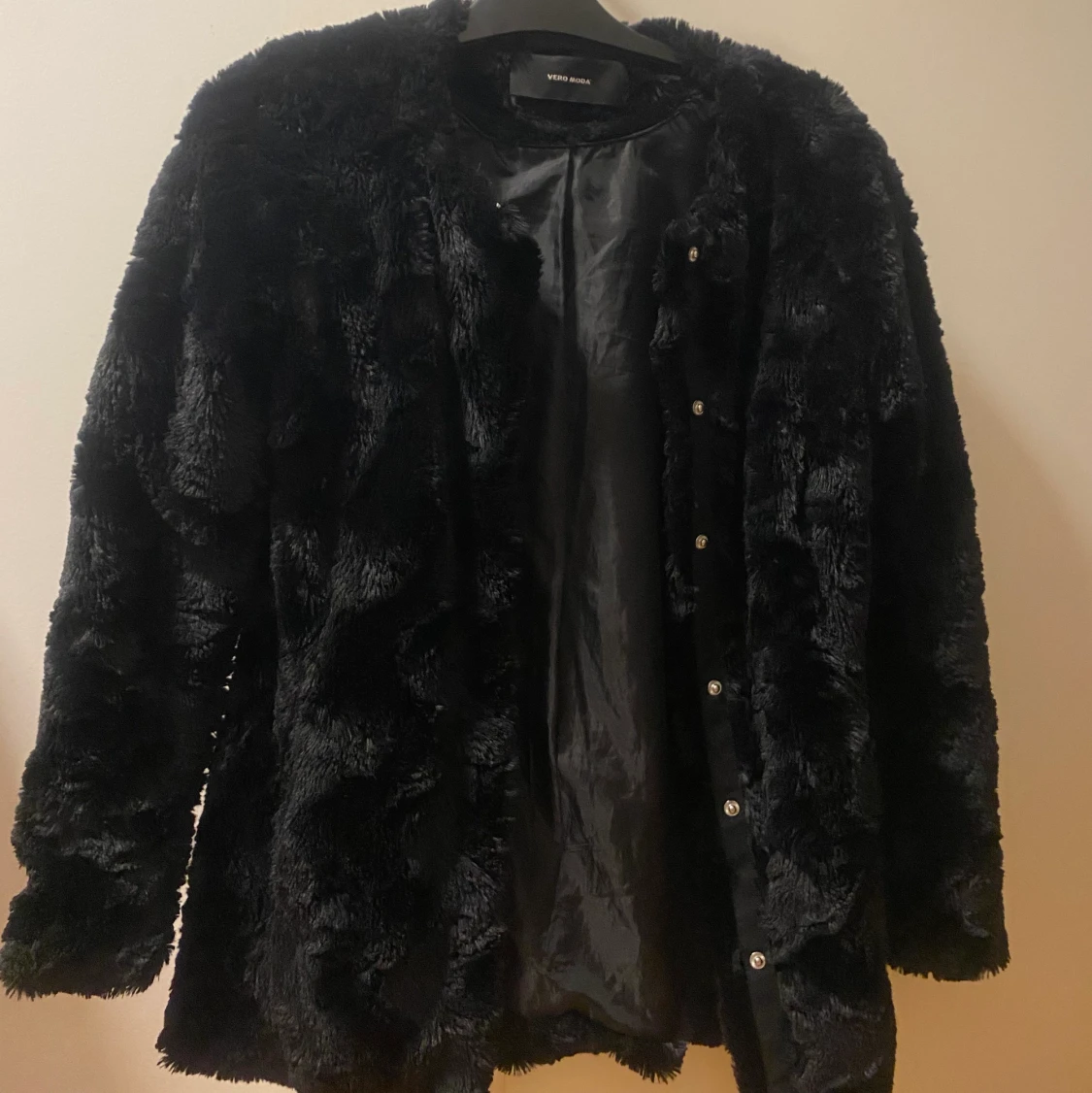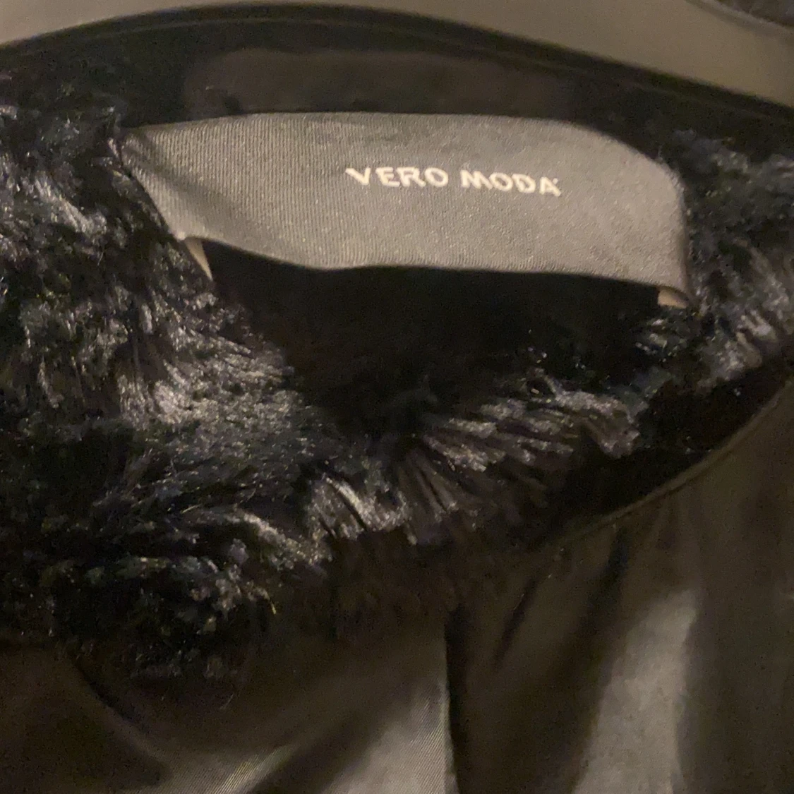 Säljer en svart fusk pälsjacka storlek S från veromoda! Den är i väldigt bra skick, förutom att lappen gått av lite, men ingenting som märks. Annars jättebra, inga hål osv. Knappt använd, jätteskön&perfekt nu till hösten. Säljer för 280kr inklusive frakt🌸