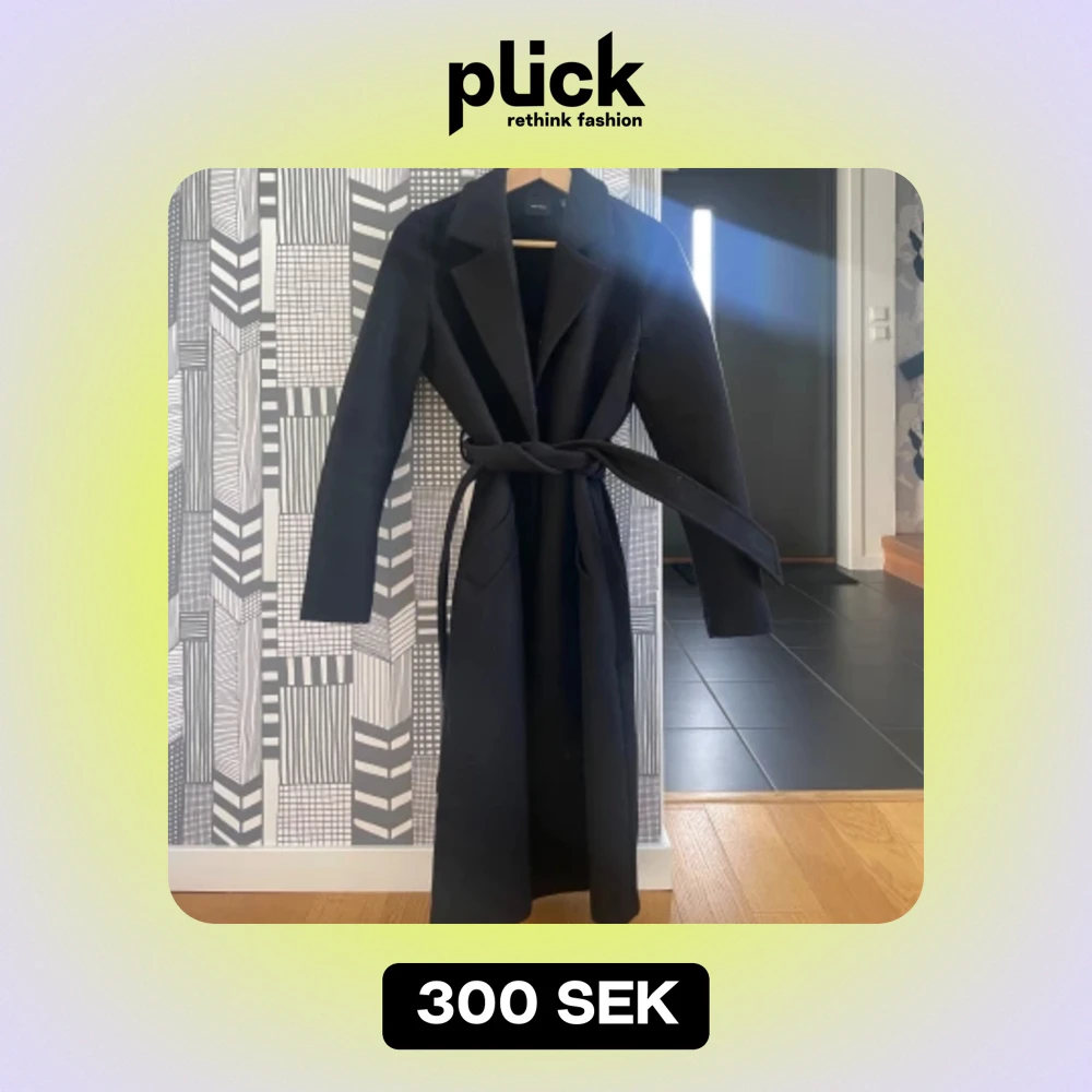Svart lång kappa med två rymliga fickor och ett band runt midjan😍 kappan är sparsamt använd o passar perfekt till höst o vinter❤️